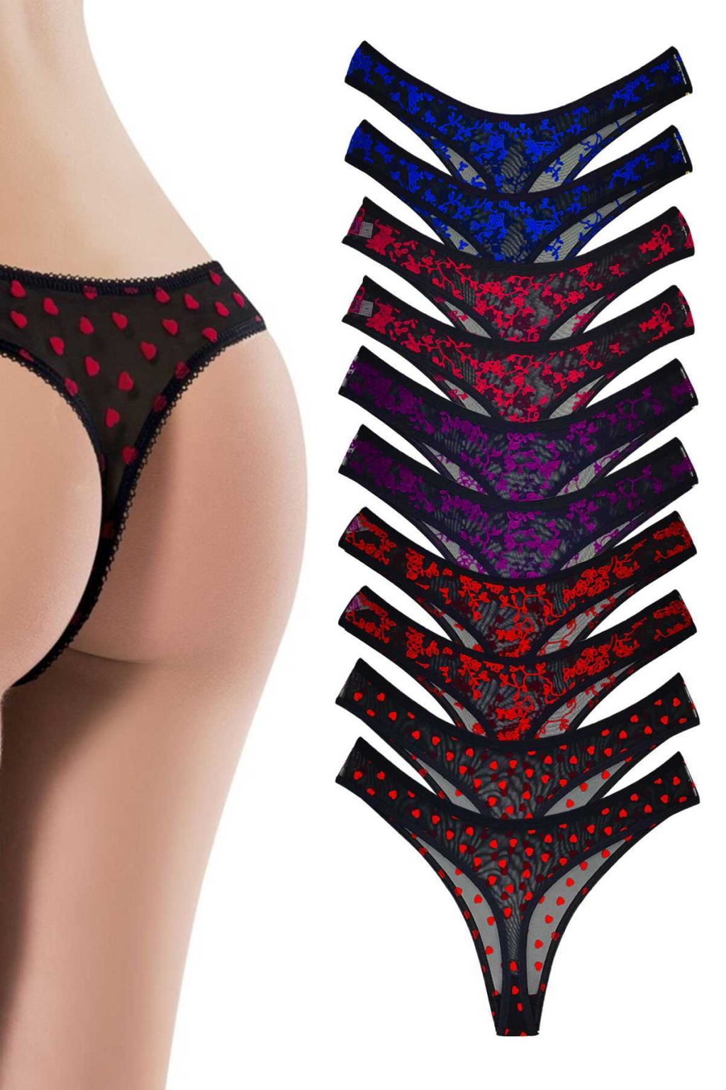 10 Adet Kadın Fantezi Kabartma Desenli Tül Tanga Külot