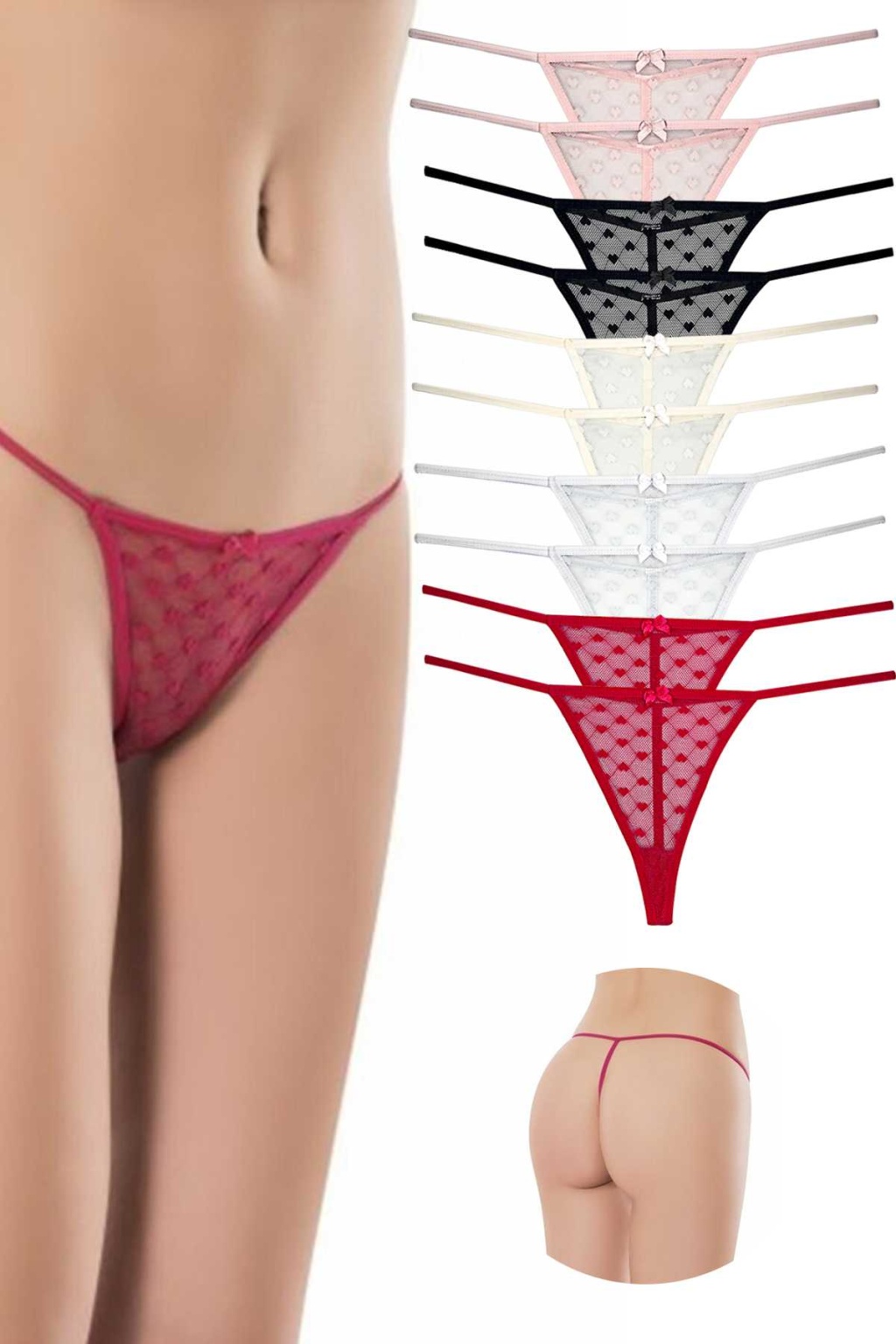 10 Adet Kadın Fantezi Kabartma Desenli Tül Tanga Külot