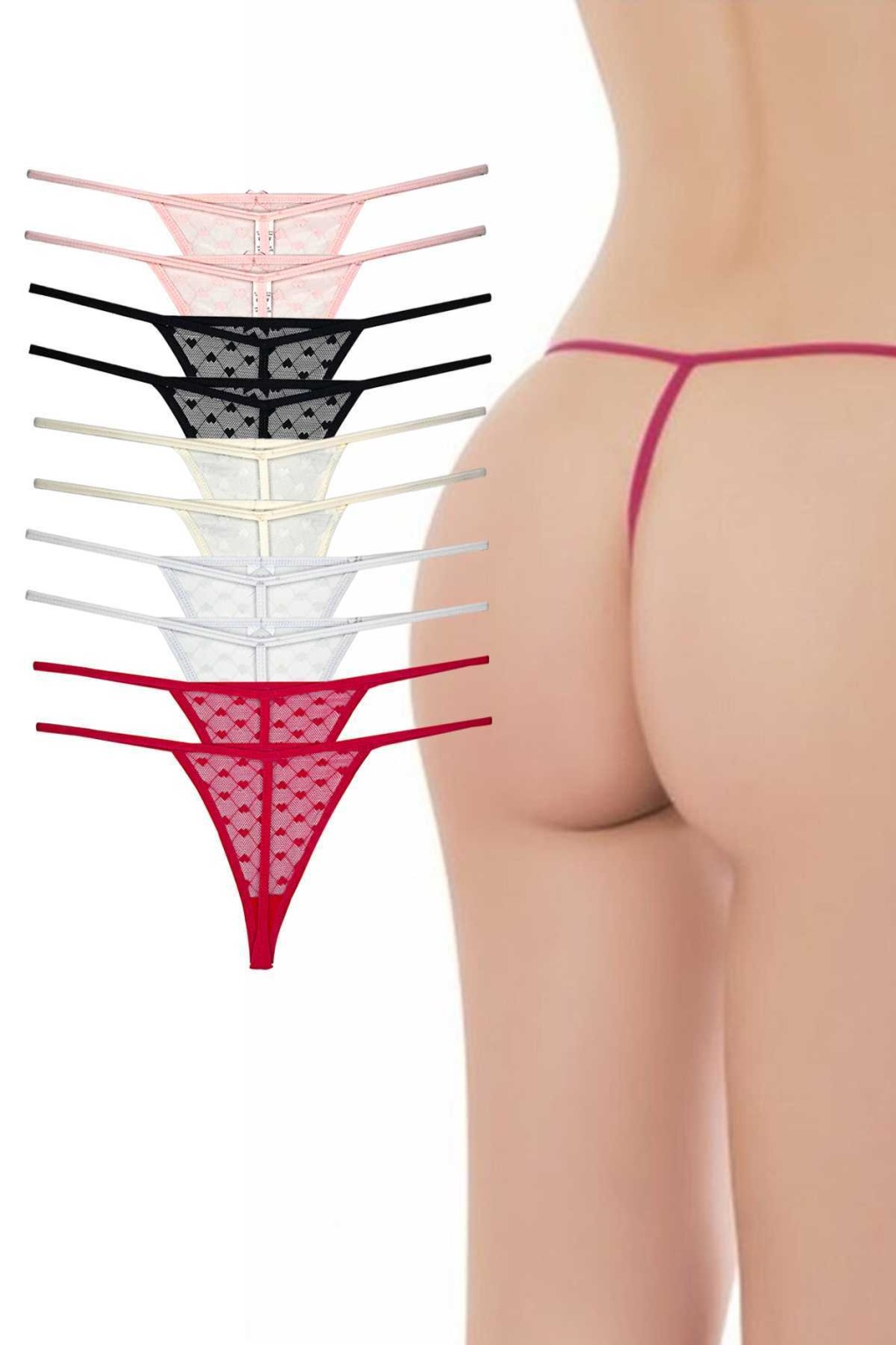 10 Adet Önü Dantelli Kadın İp Tanga String İpkini