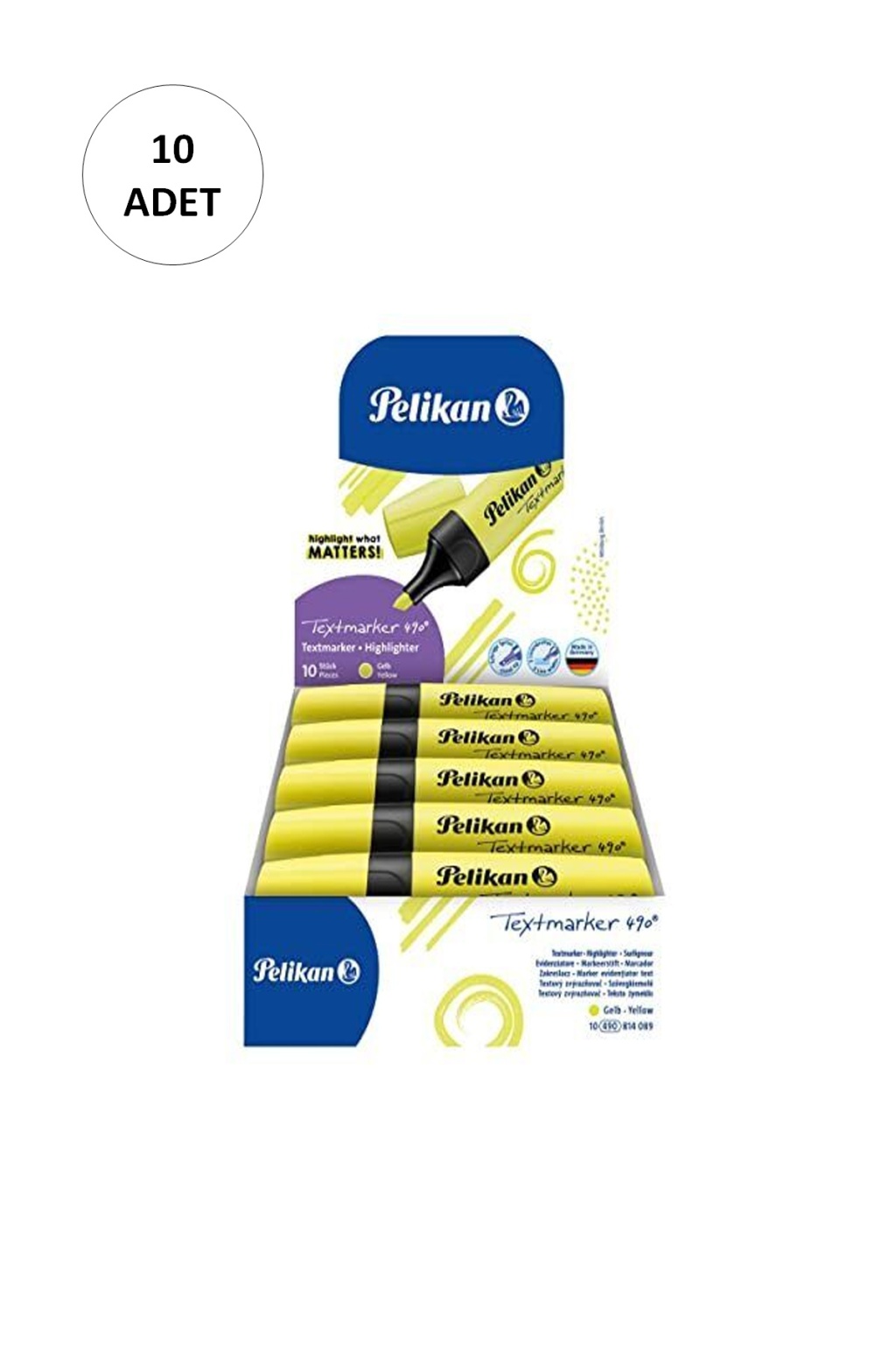 10 Adet Pelikan 490 Fosforlu İşaretleme Kalemi Sarı