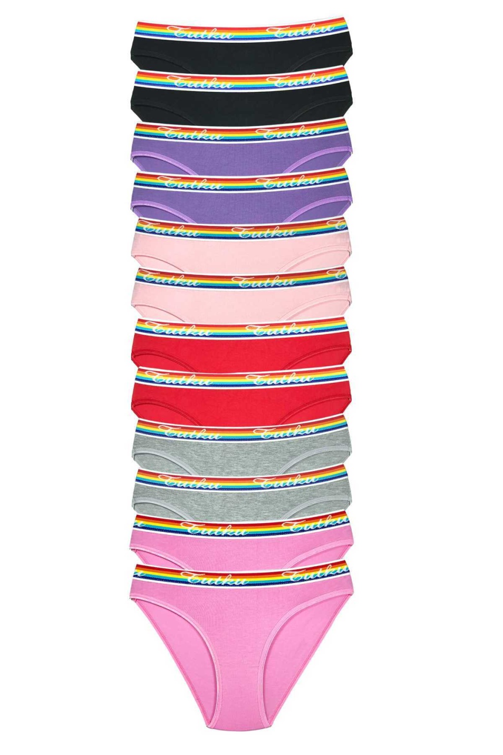 12 Adet Beli Renkli Lastik Pamuklu Kadın Slip Tutku Külot