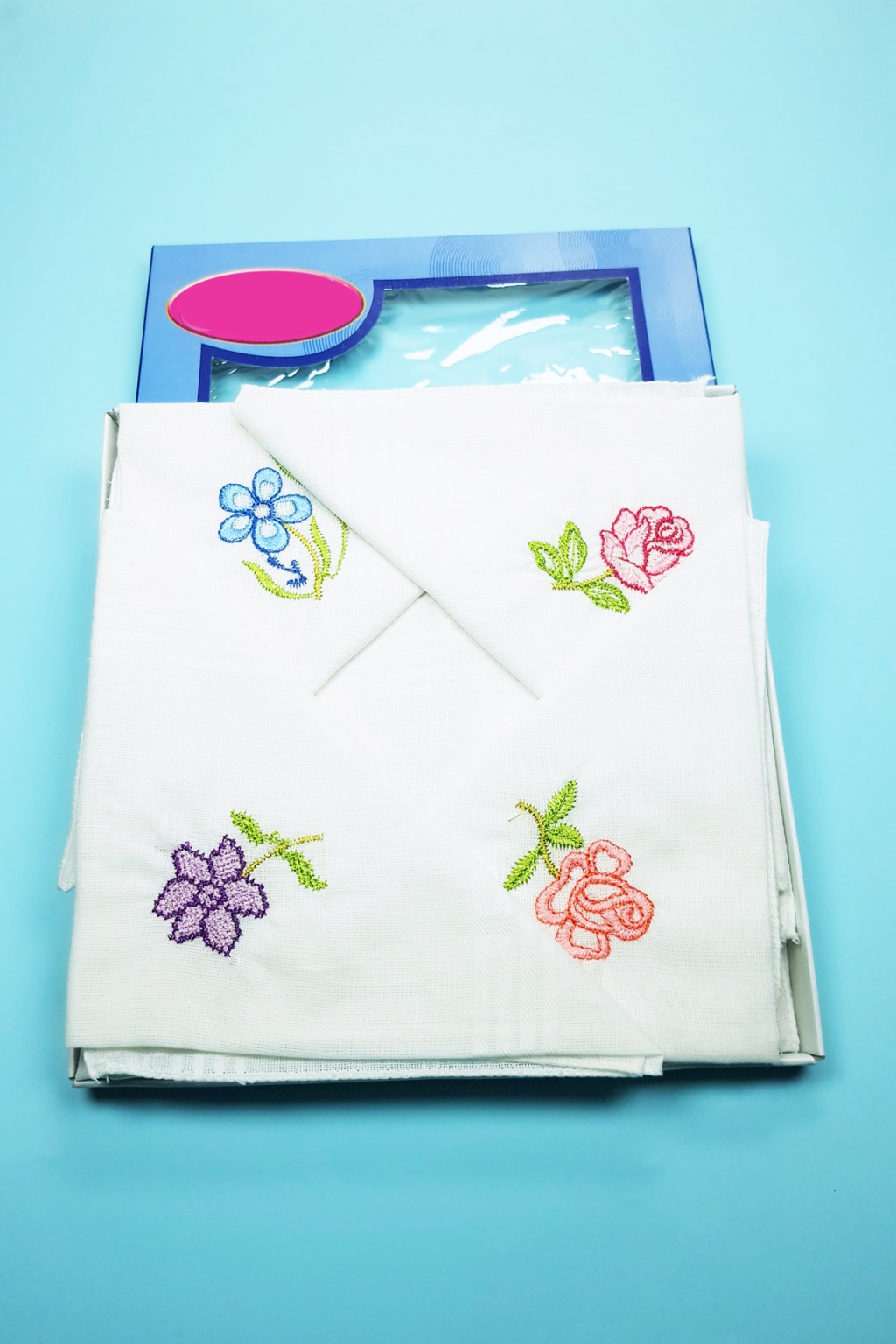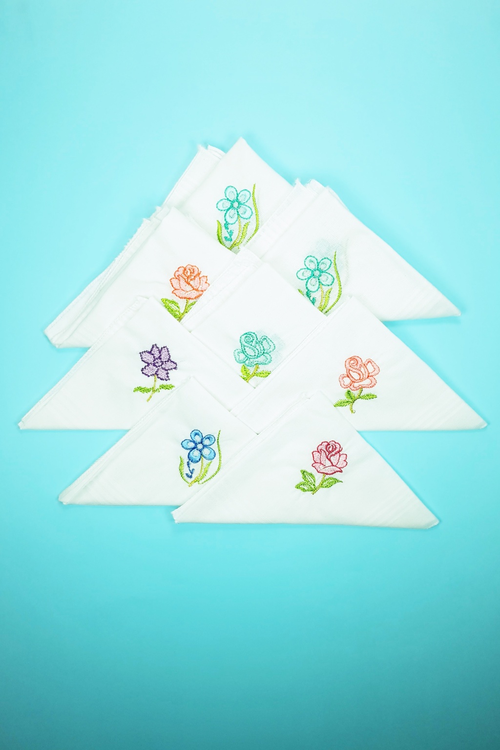 12 Adet Çiçek İşlemeli Kadın Cep Mendili Kutulu Kına Düğün Çeyizlik Mendil 30x30 cm