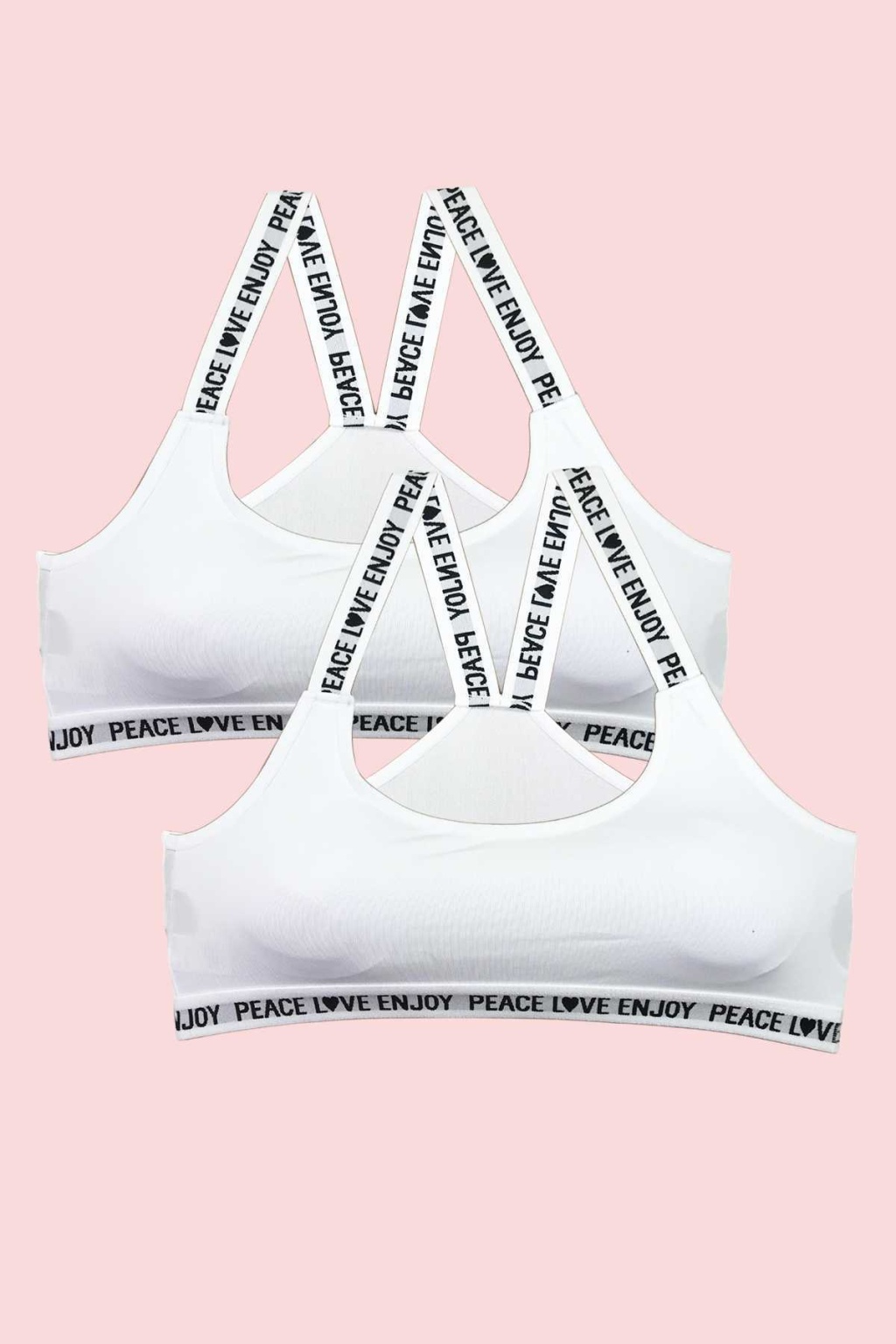 2 Adet Çapraz Kalın Askılı Kadın Sporcu Büstiyer Beyaz