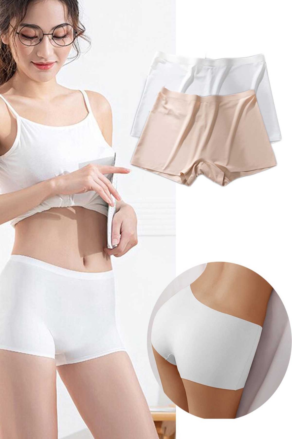 2 Adet Kadın Dikişsiz Görünmez İz Yapmaz Mini Şort Boxer Beyaz Ten