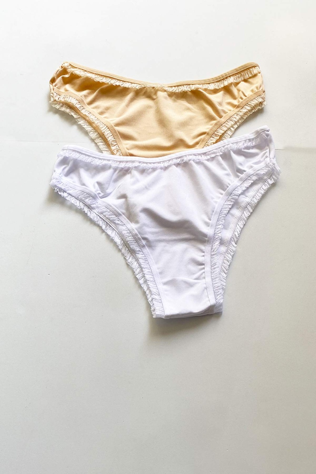 2 Adet Kadın Mikro Bikini Külot İnce Lastik FırFır Kenarlı Yumuşak Doku İç Giyim Beyaz Ten