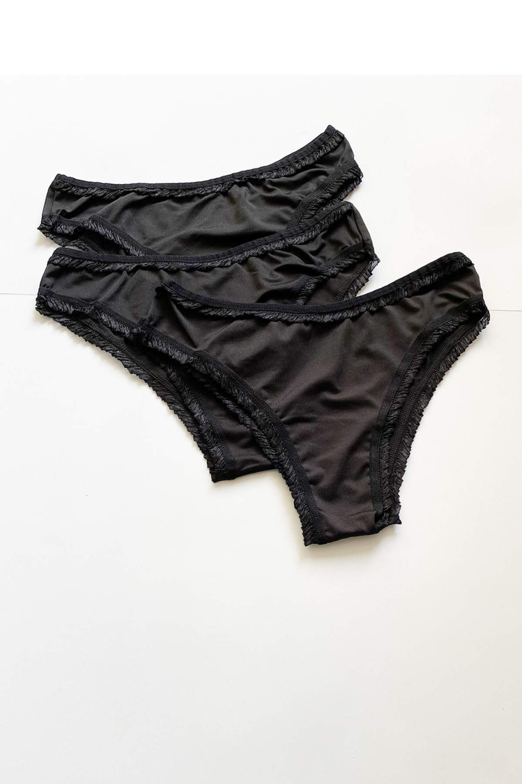 3 Adet Kadın Mikro Bikini Külot İnce Lastik FırFır Kenarlı Yumuşak Doku İç Giyim Siyah