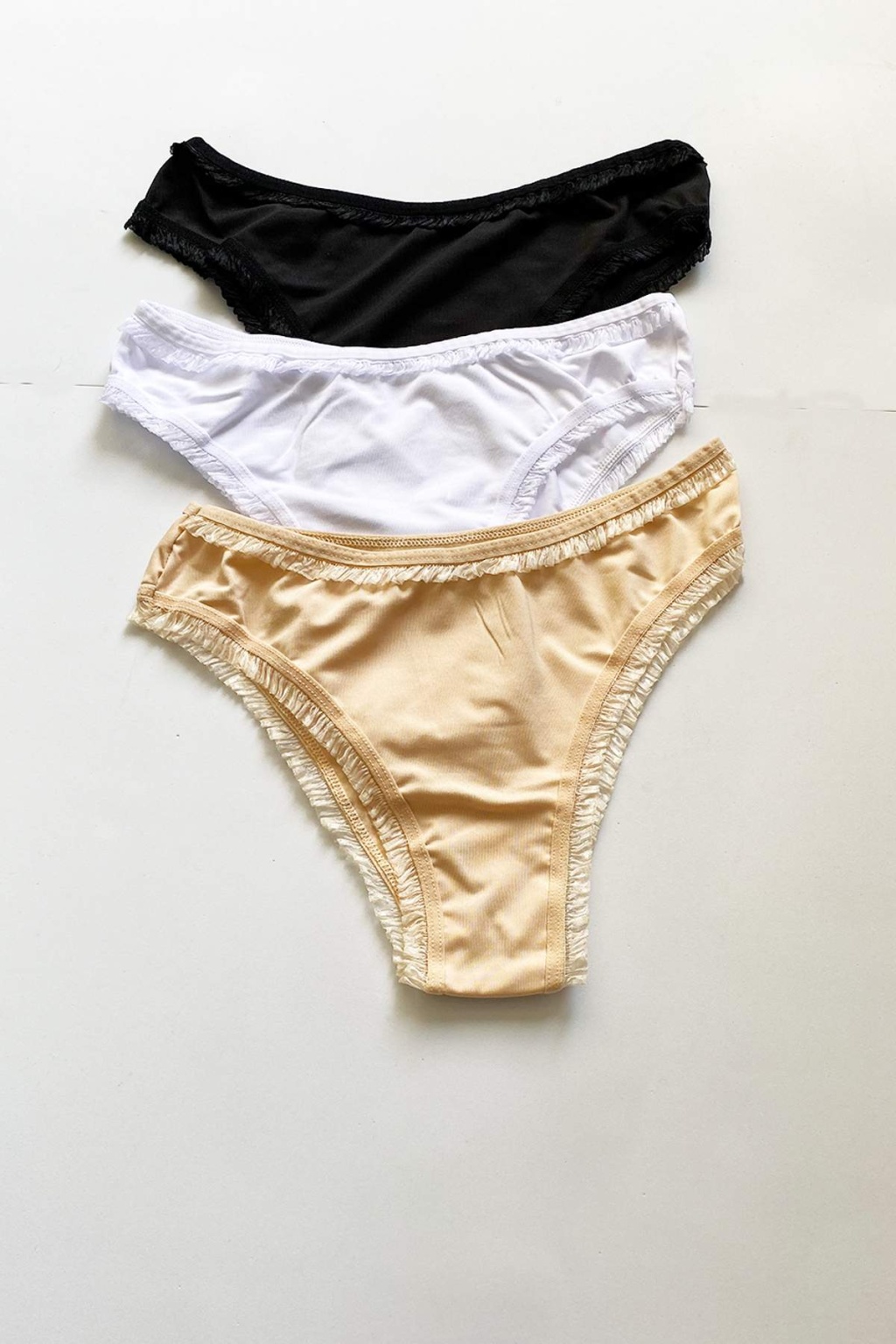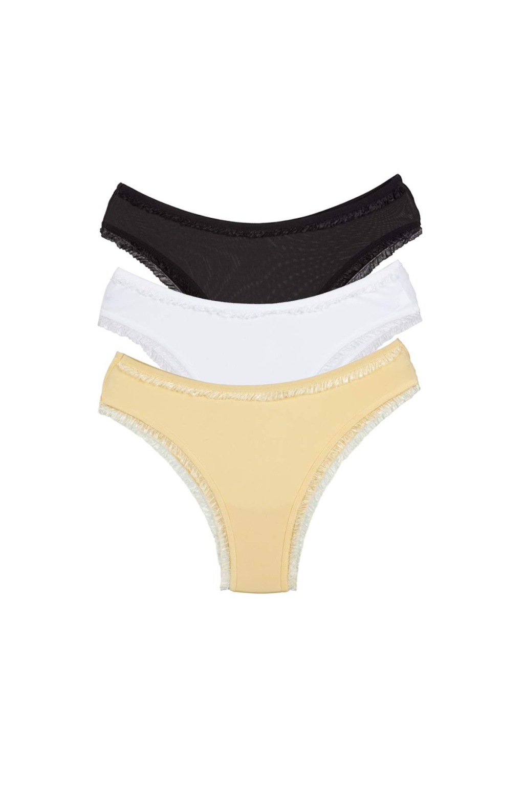 3 Adet Kadın Mikro Bikini Külot İnce Lastik FırFır Kenarlı Yumuşak Doku İç Giyim Siyah Beyaz Ten