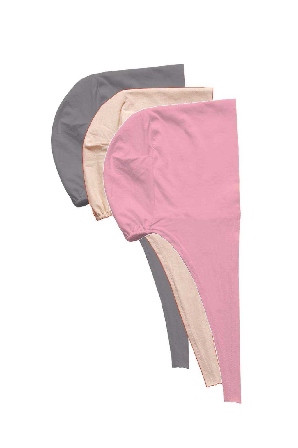 3 Adet Tesettür Bone Bağcıklı Likralı Gri Krem Pudra
