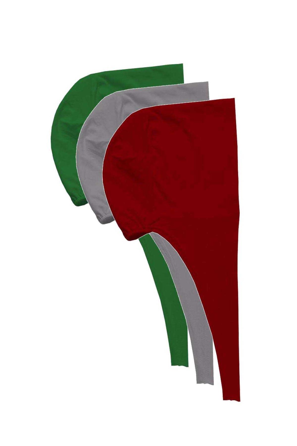 3 Adet Tesettür Bone Bağcıklı Likralı Yeşil Gri Bordo