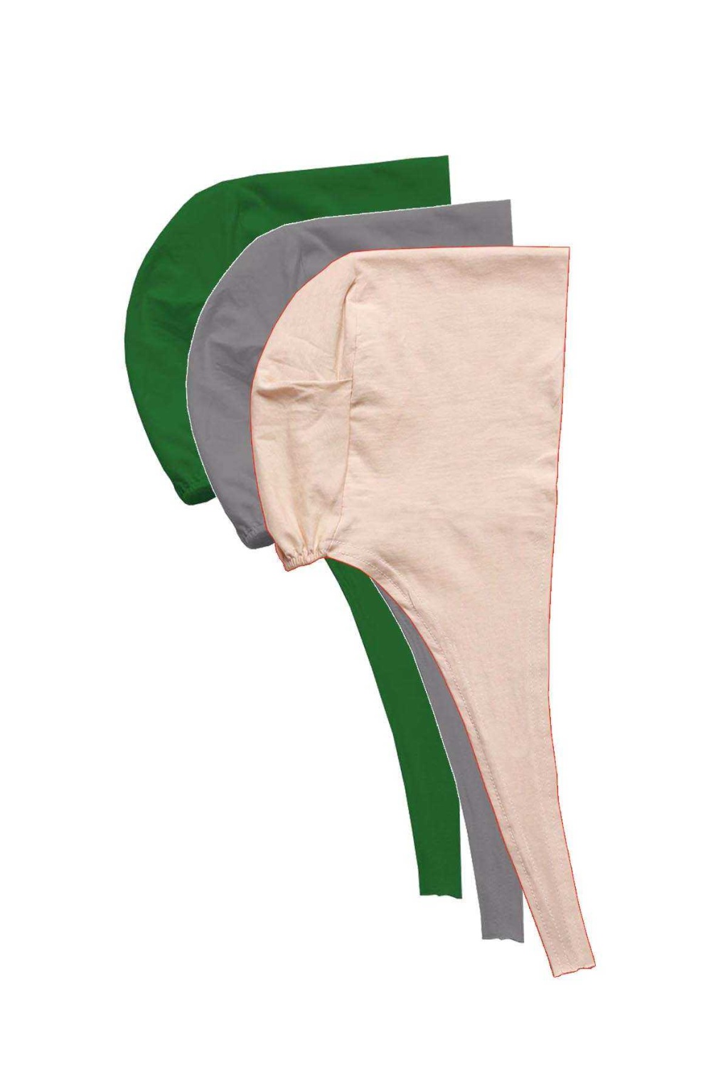 3 Adet Tesettür Bone Bağcıklı Likralı Yeşil Gri Krem