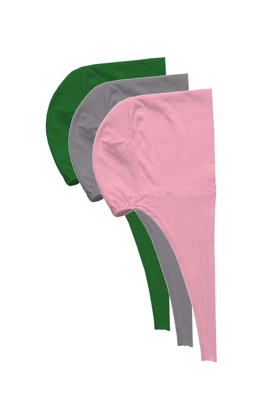 3 Adet Tesettür Bone Bağcıklı Likralı Yeşil Gri Pudra