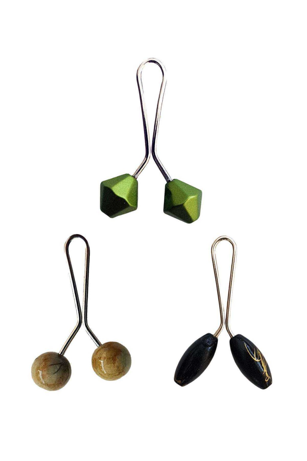 3 Adet Tesettür Eşarp ve Şal Klipsi Siyah Siyah Desenl Yeşil