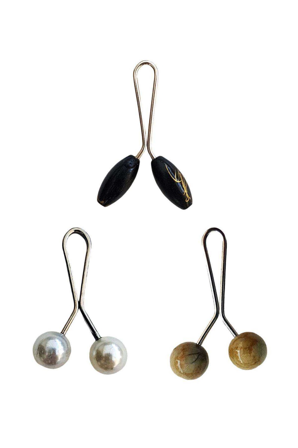 3 Adet Tesettür Eşarp ve Şal Klipsi İnci Beyaz Hardal Siyah Desenli