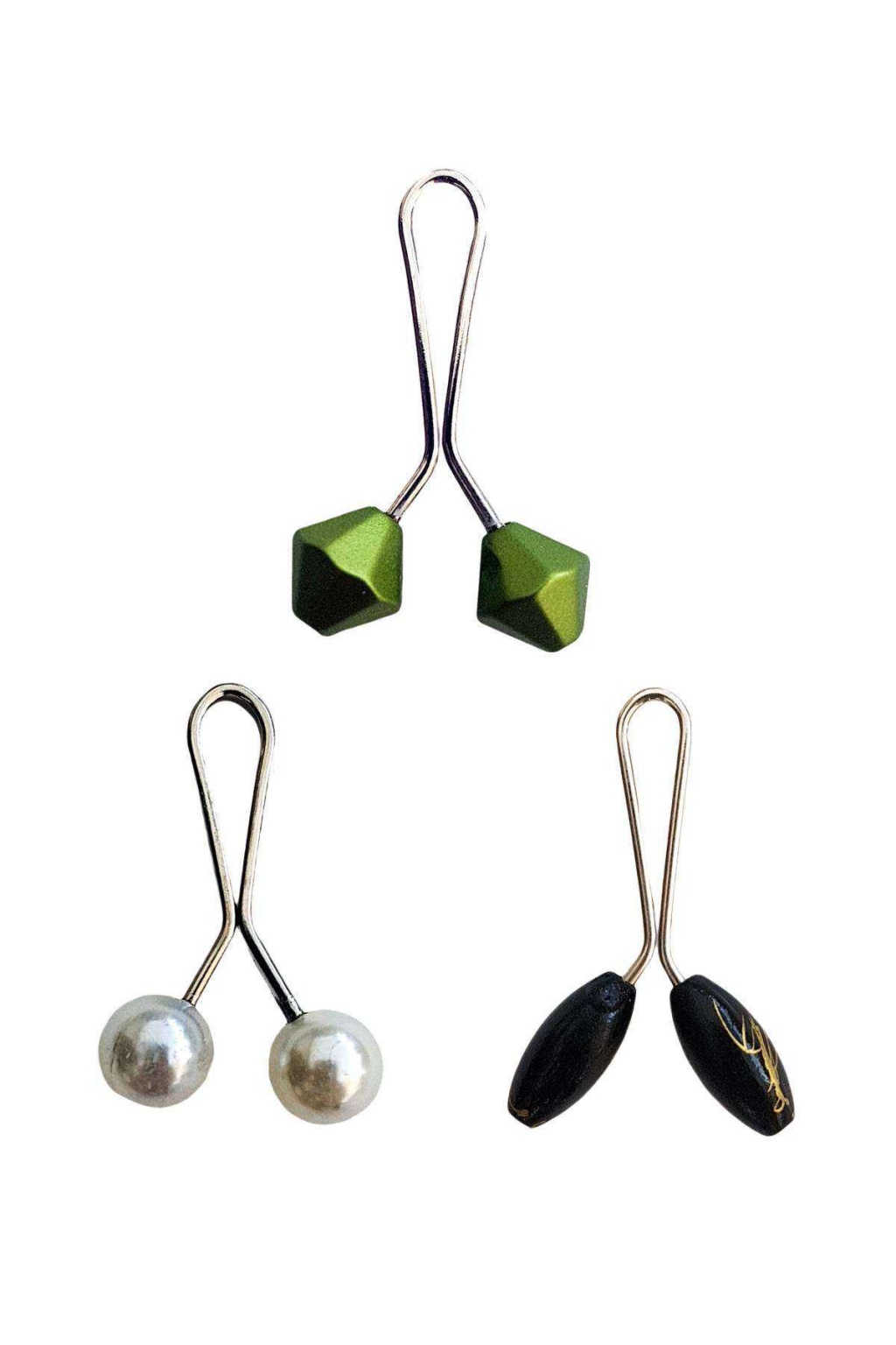 3 Adet Tesettür Eşarp ve Şal Klipsi Hardal Siyah Yeşil