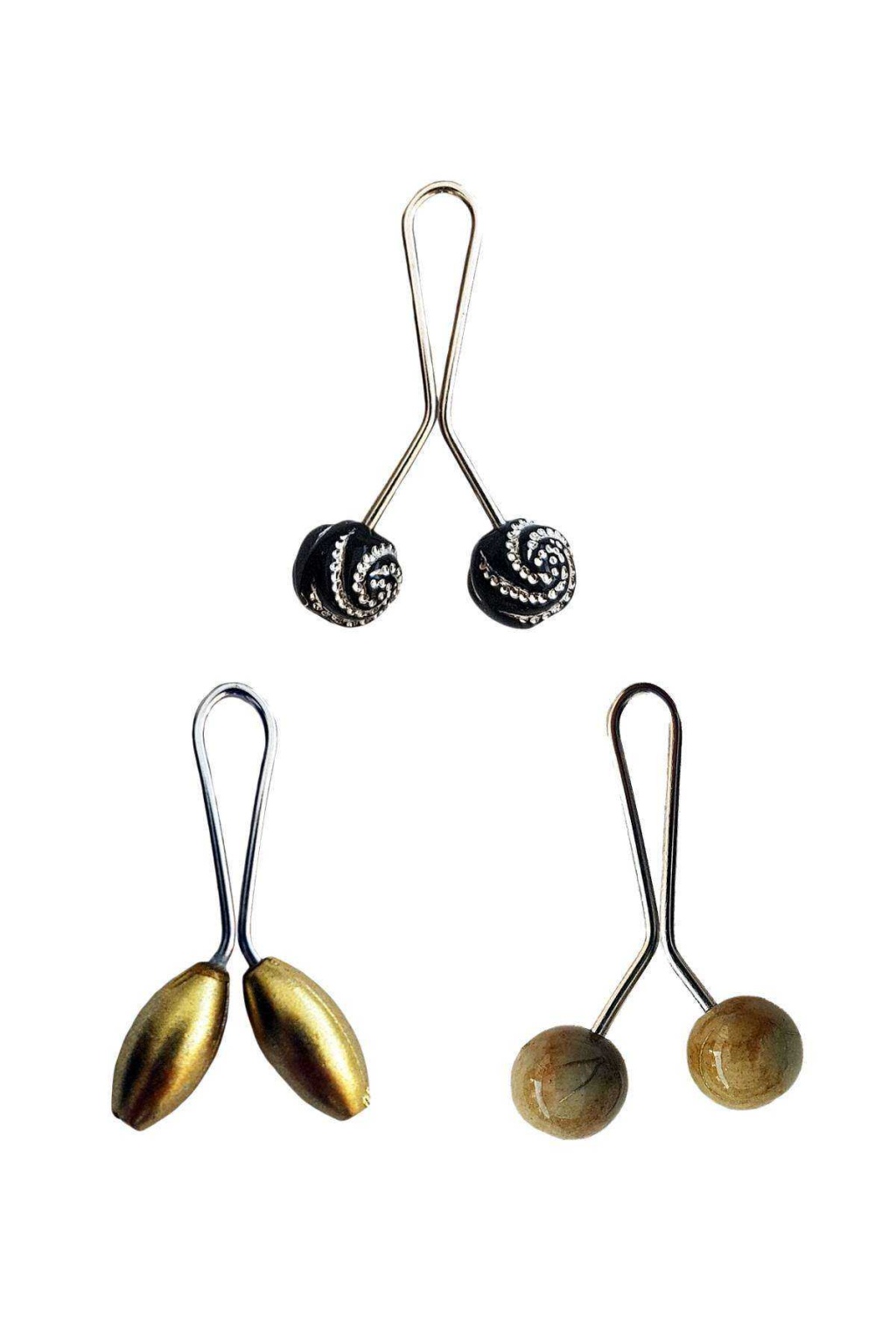 3 Adet Tesettür Eşarp ve Şal Klipsi Hardal Siyah Siyah Desenli