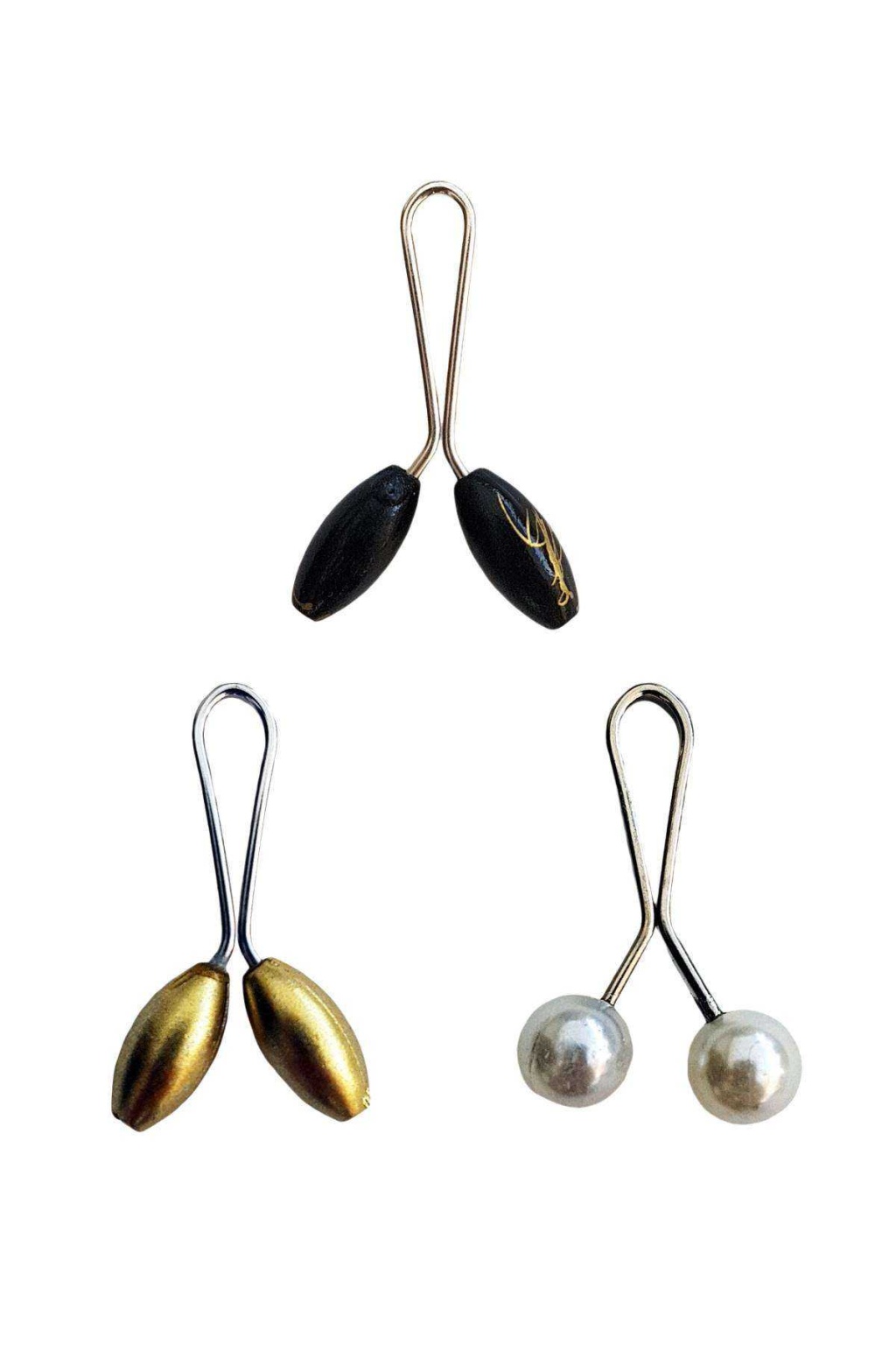 3 Adet Tesettür Eşarp ve Şal Klipsi Sarı İnci Beyaz Siyah