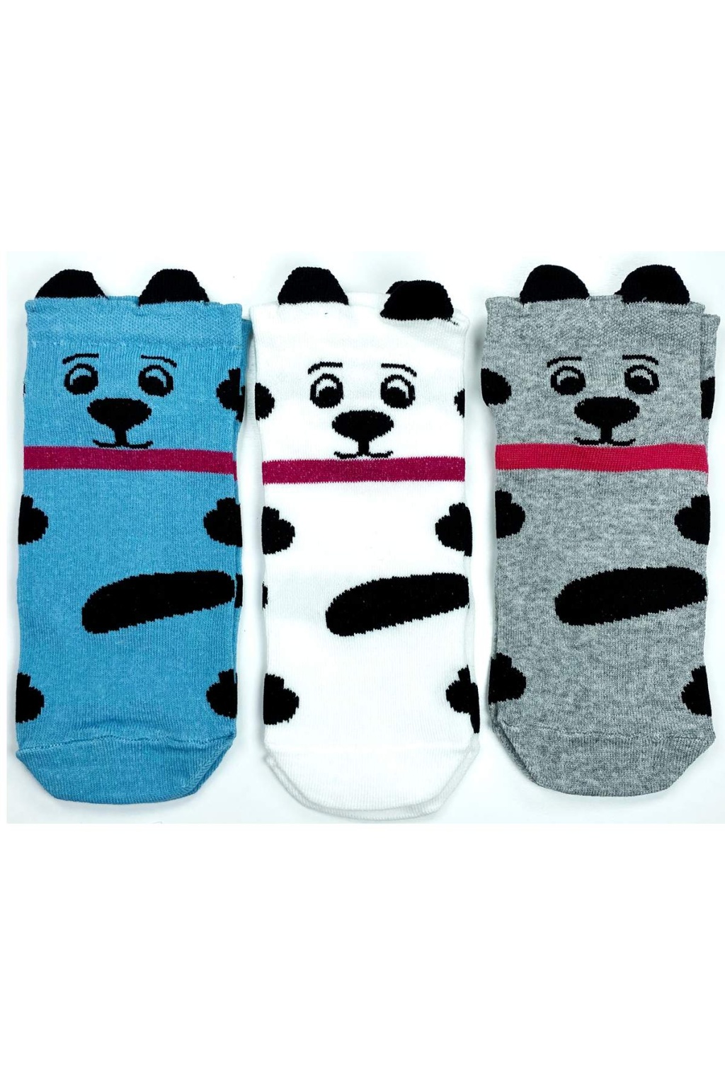 3 Çift Köpek Temalı 3 Boyutlu Kulaklı Pamuklu Yumuşak Kadın Bilek Çorap