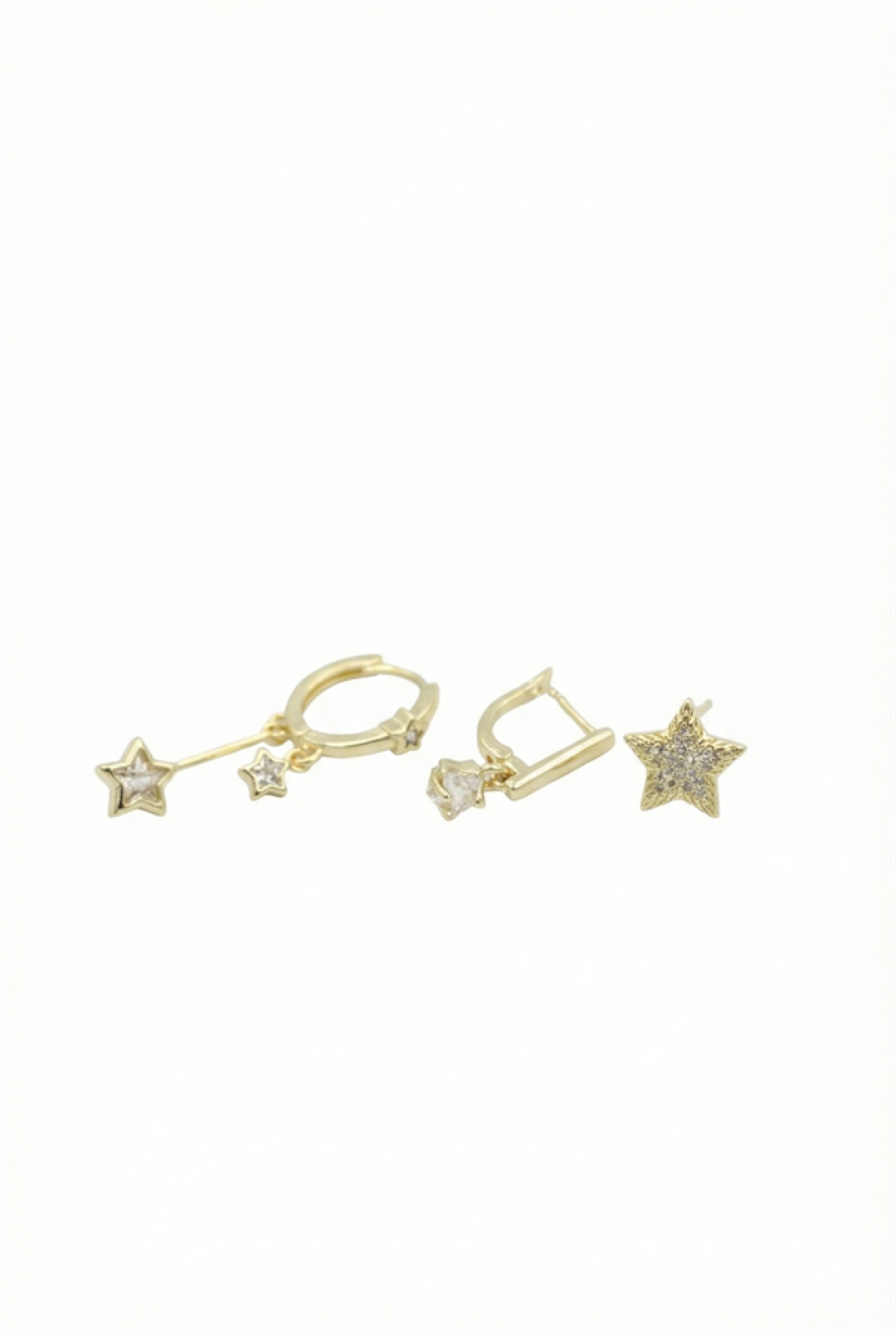 3'lü Taşlı Halka Küpe - Altın