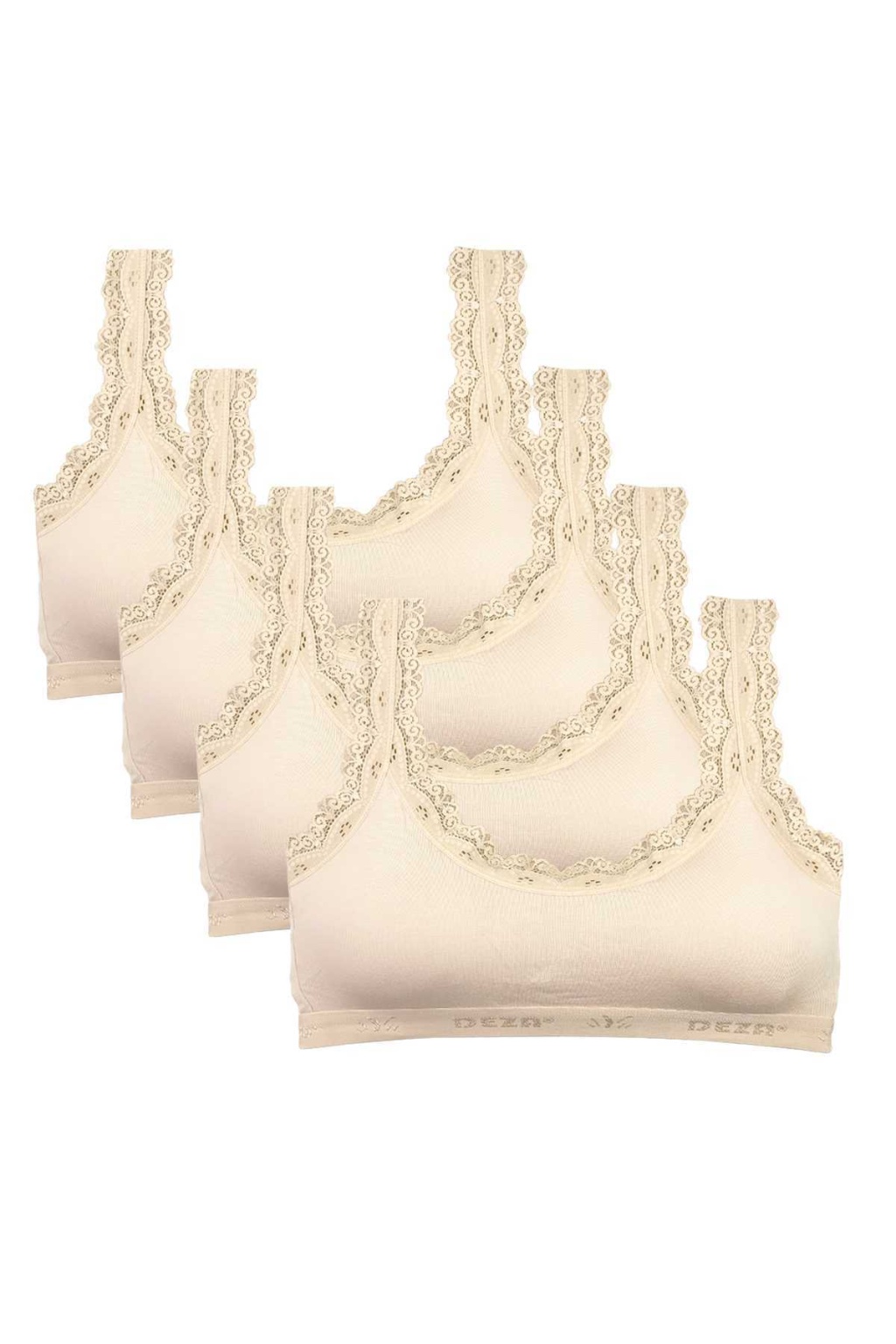 4 Adet Dantel Nakış İşlemeli Pedli Bambu Kadın Büstiyer Ten Krem