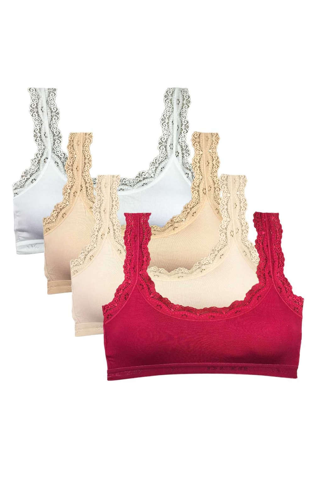 4 Adet Dantel Nakış İşlemeli Pedli Bambu Kadın Büstiyer Beyaz Bordo