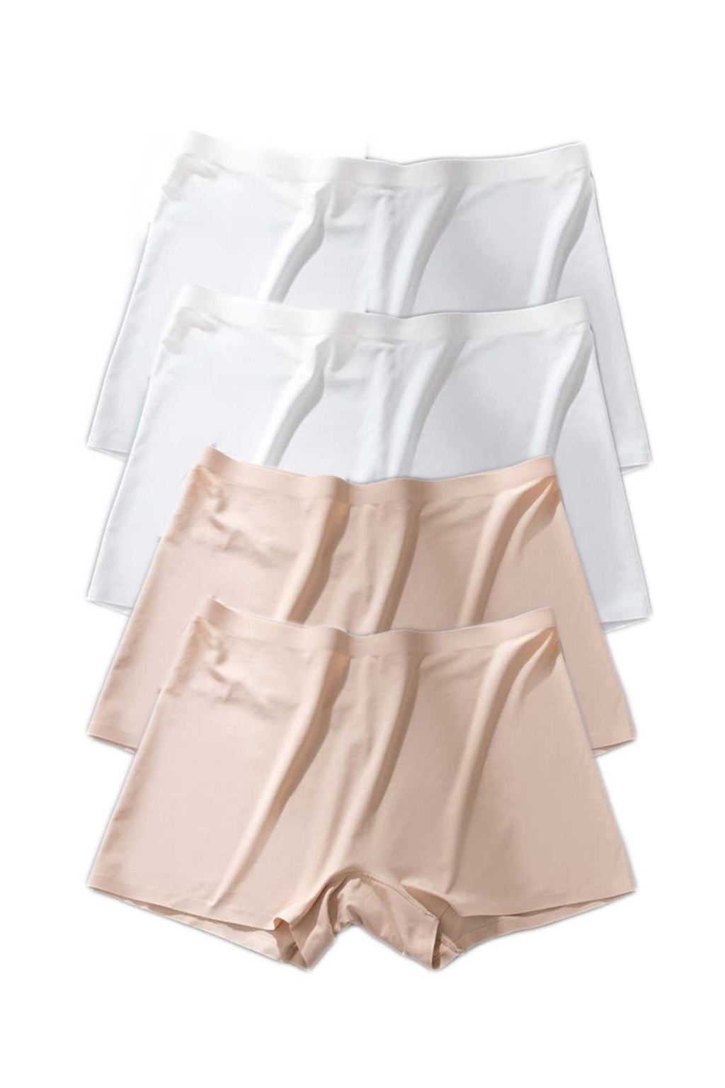 4 Adet Kadın Dikişsiz Görünmez İz Yapmaz Mini Şort Boxer Beyaz Ten