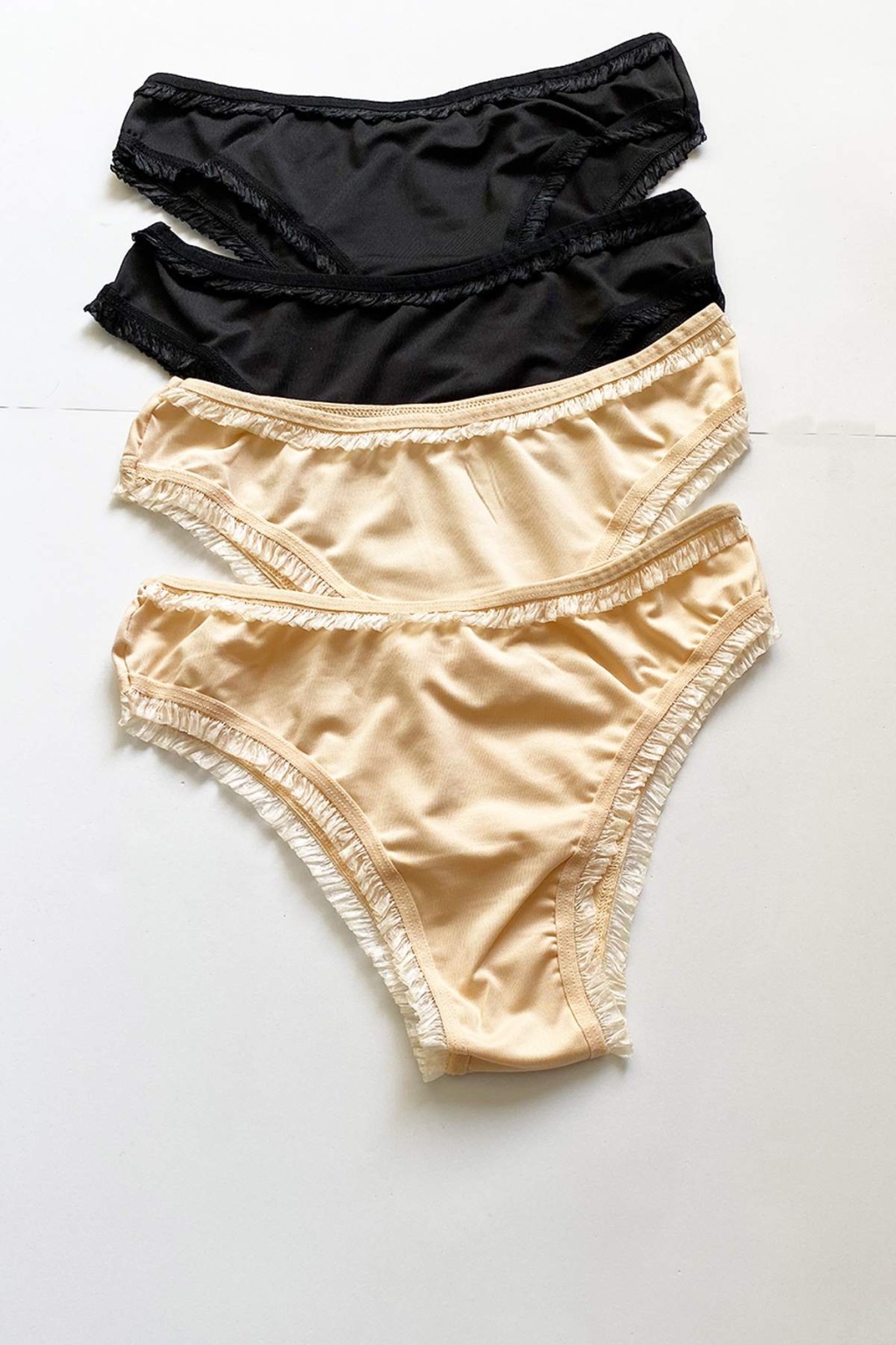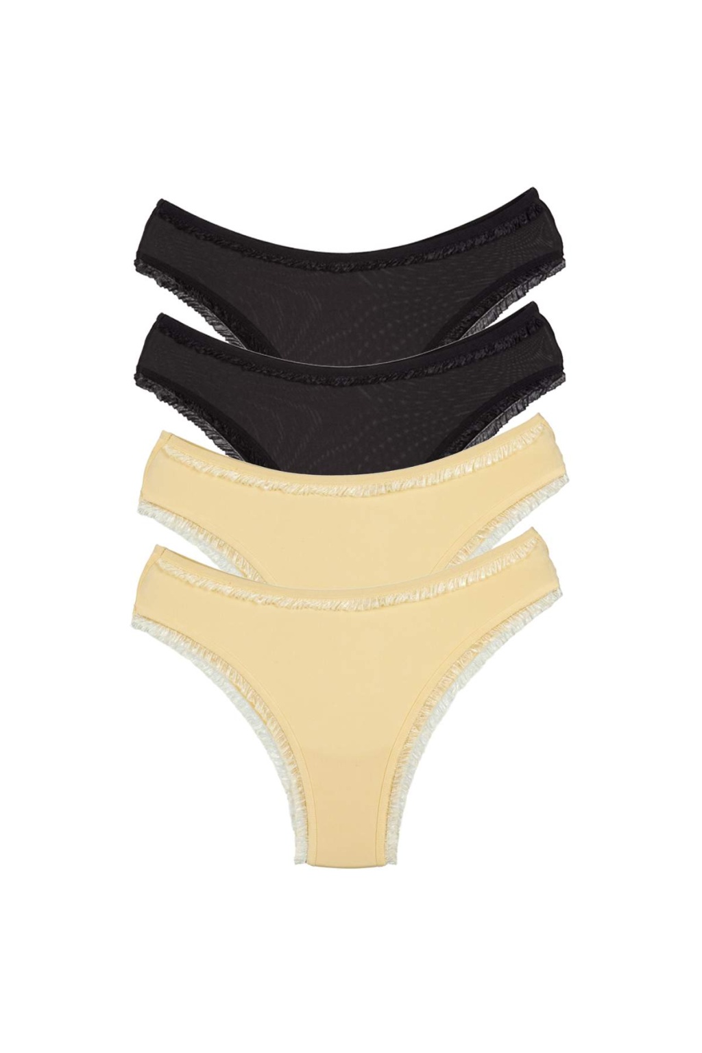 4 Adet Kadın Mikro Bikini Külot İnce Lastik FırFır Kenarlı Yumuşak Doku İç Giyim Siyah Beyaz