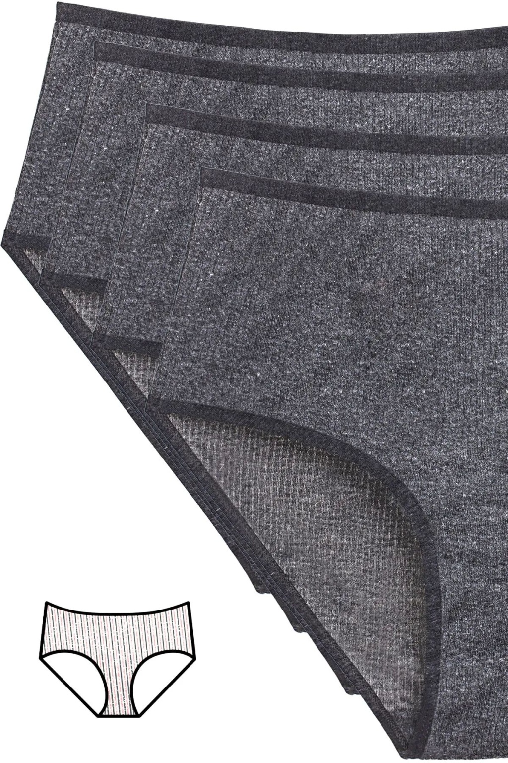 4'lü Yeni Seri Renkli Yüksek Bel Fitilli Ribana Bato Külot Antrasit