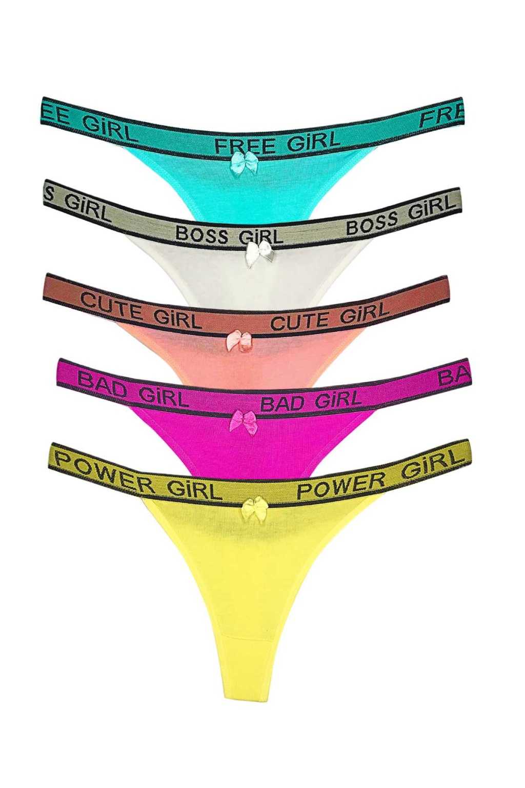 5 Adet Beli Yazılı Pamuk Kadın Tanga String Külot