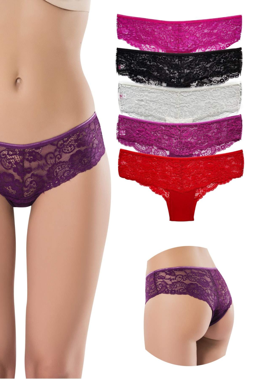 5 Adet Kadın Bel Dantel Tül Bikini Külot