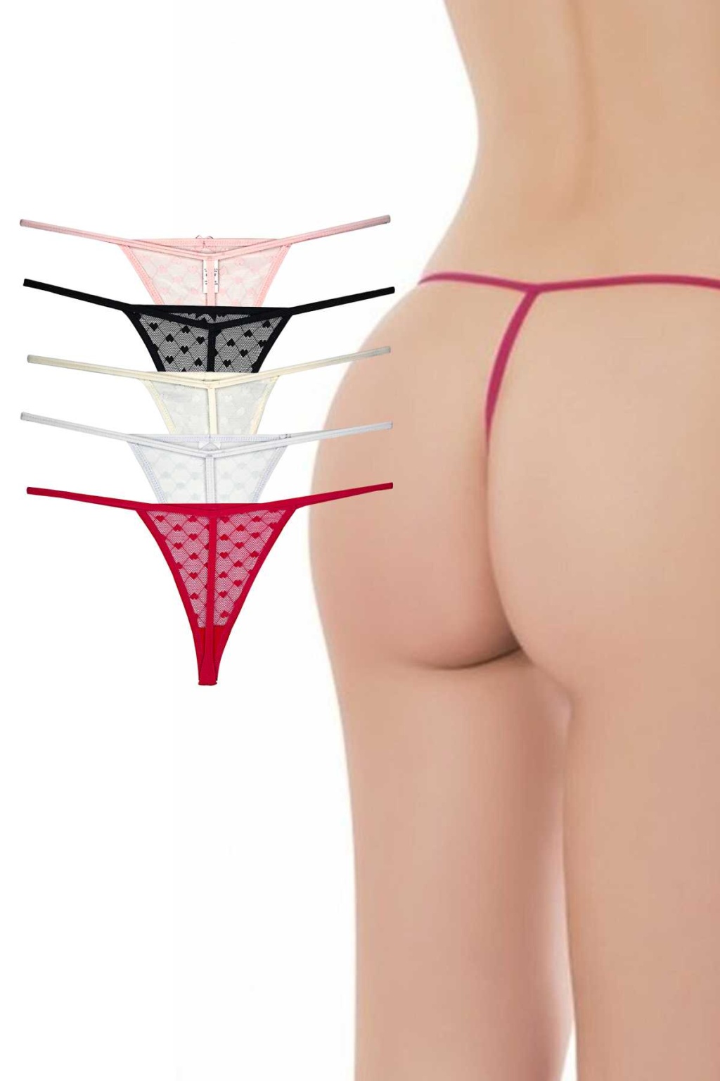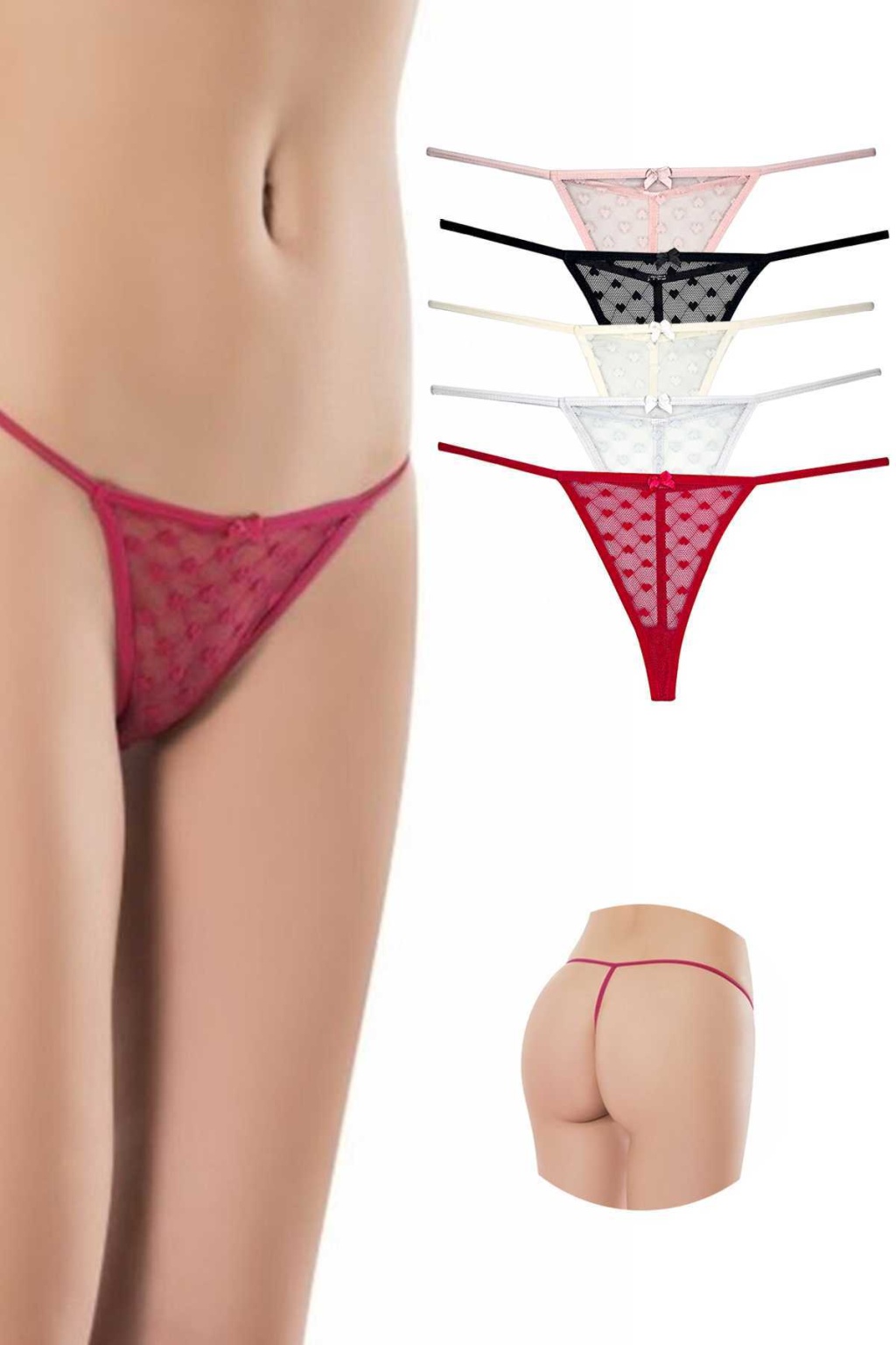 5 Adet Kadın Fantezi Kabartma Desenli Tül Tanga Külot