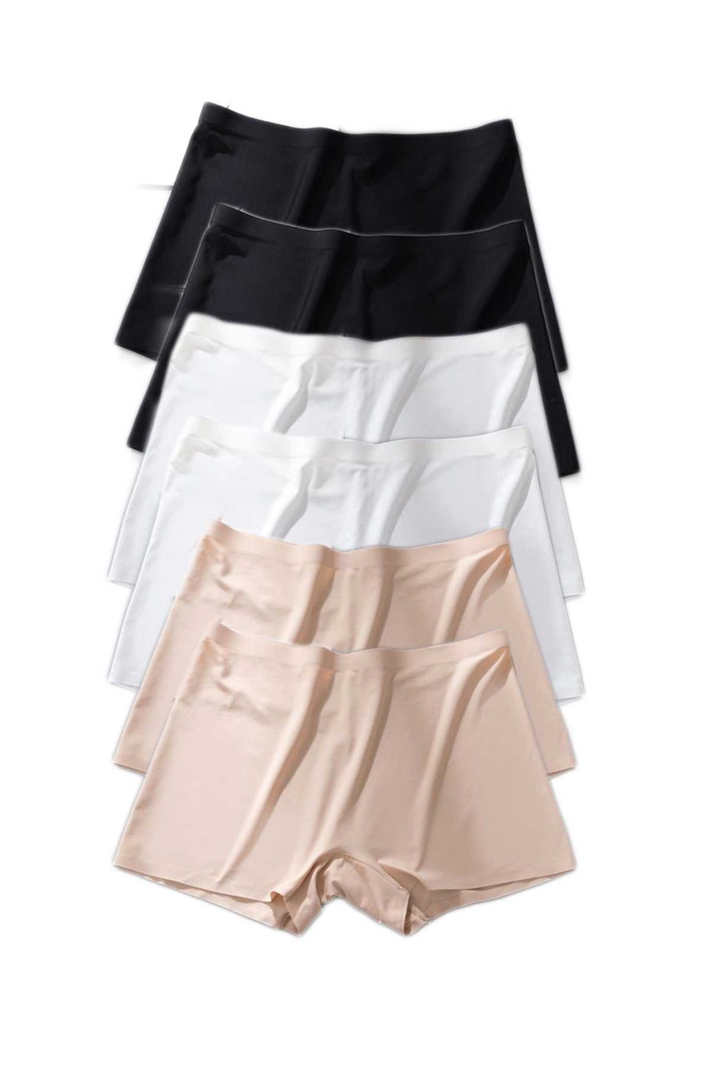 6 Adet Kadın Dikişsiz Görünmez İz Yapmaz Mini Şort Boxer Siyah Beyaz Ten