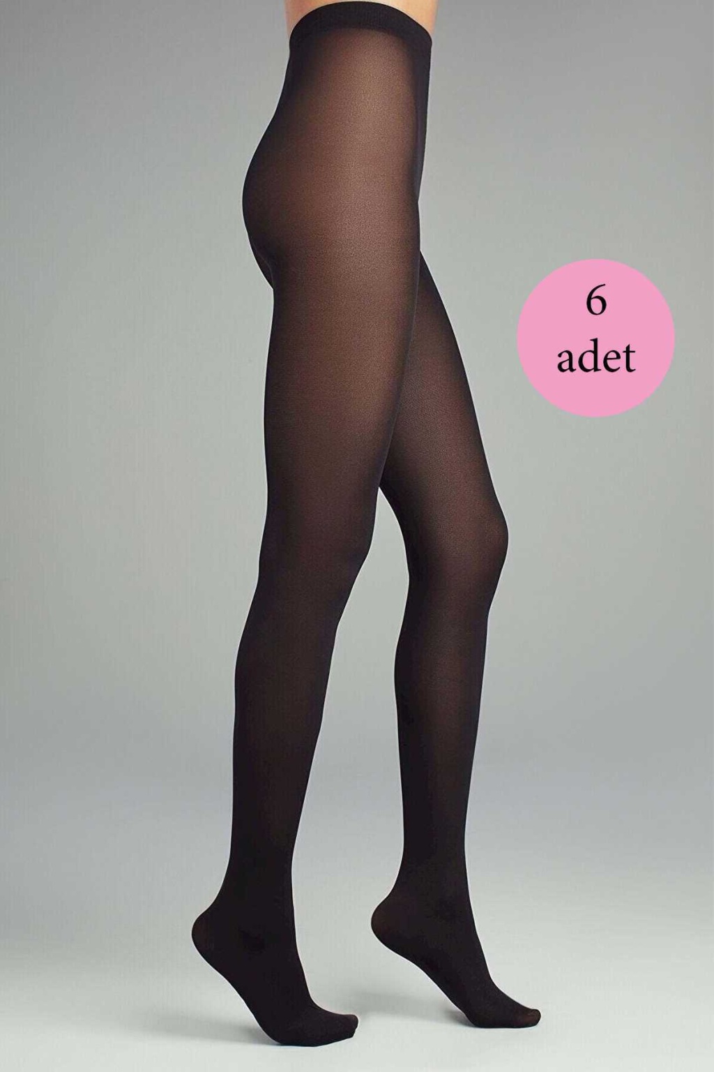 6 Adet Siyah 100 Denye Kalın Kışlık Külotlu Çorap Opak Naturel Esnek 6'lı Paket
