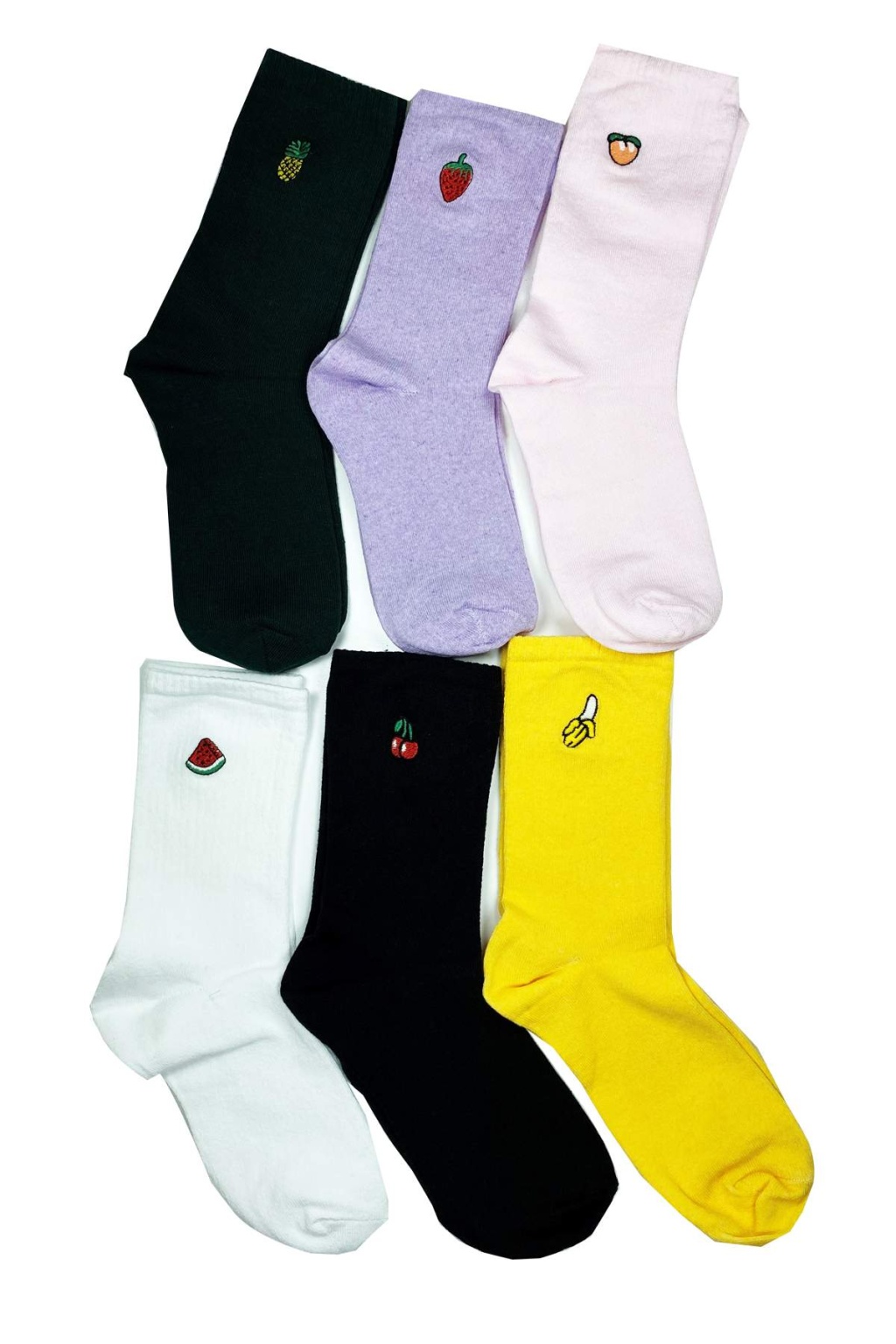 6 Çift Meyve Bakış Baskılı Pamuklu Canlı Renkler Kadın Soket Kolej Çorap