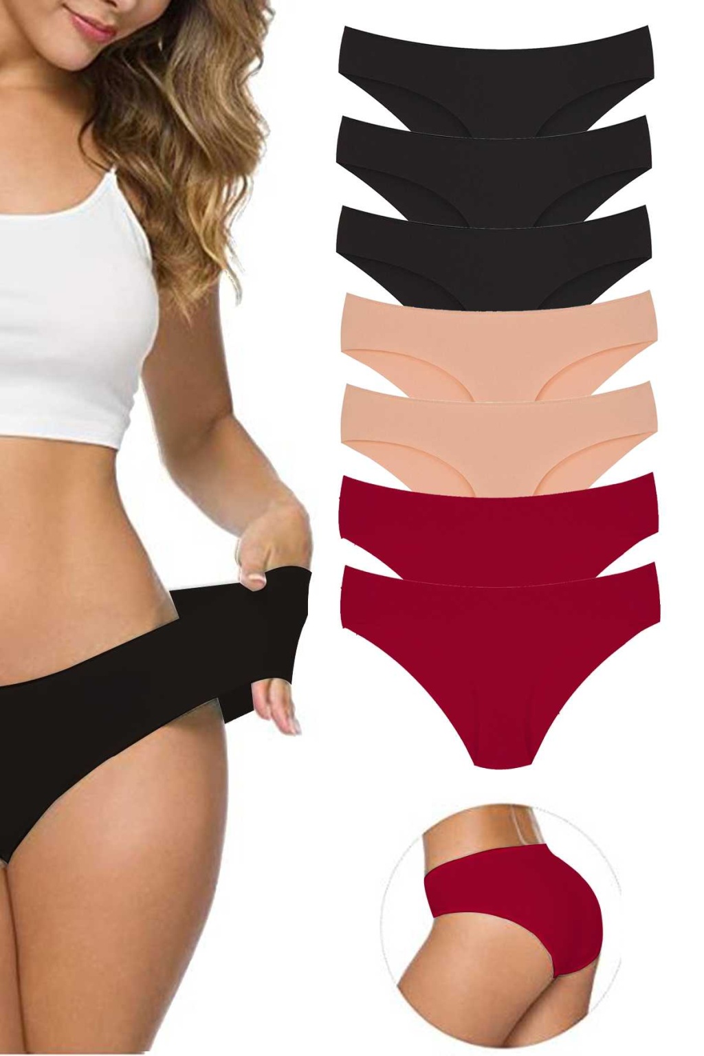 7 Adet Kadın Dikişsiz Lazer Kesim Esnek İz yapmayan Külot Bordo