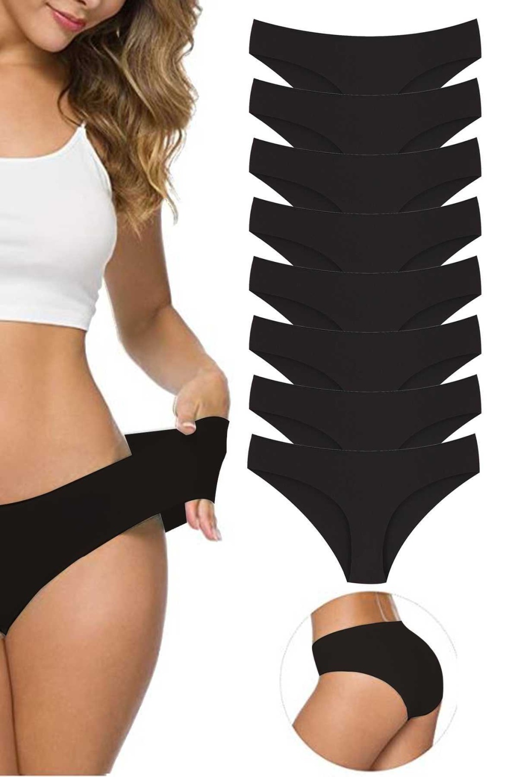 8 Adet Kadın Dikişsiz Lazer Kesim Esnek İz yapmayan Külot Siyah