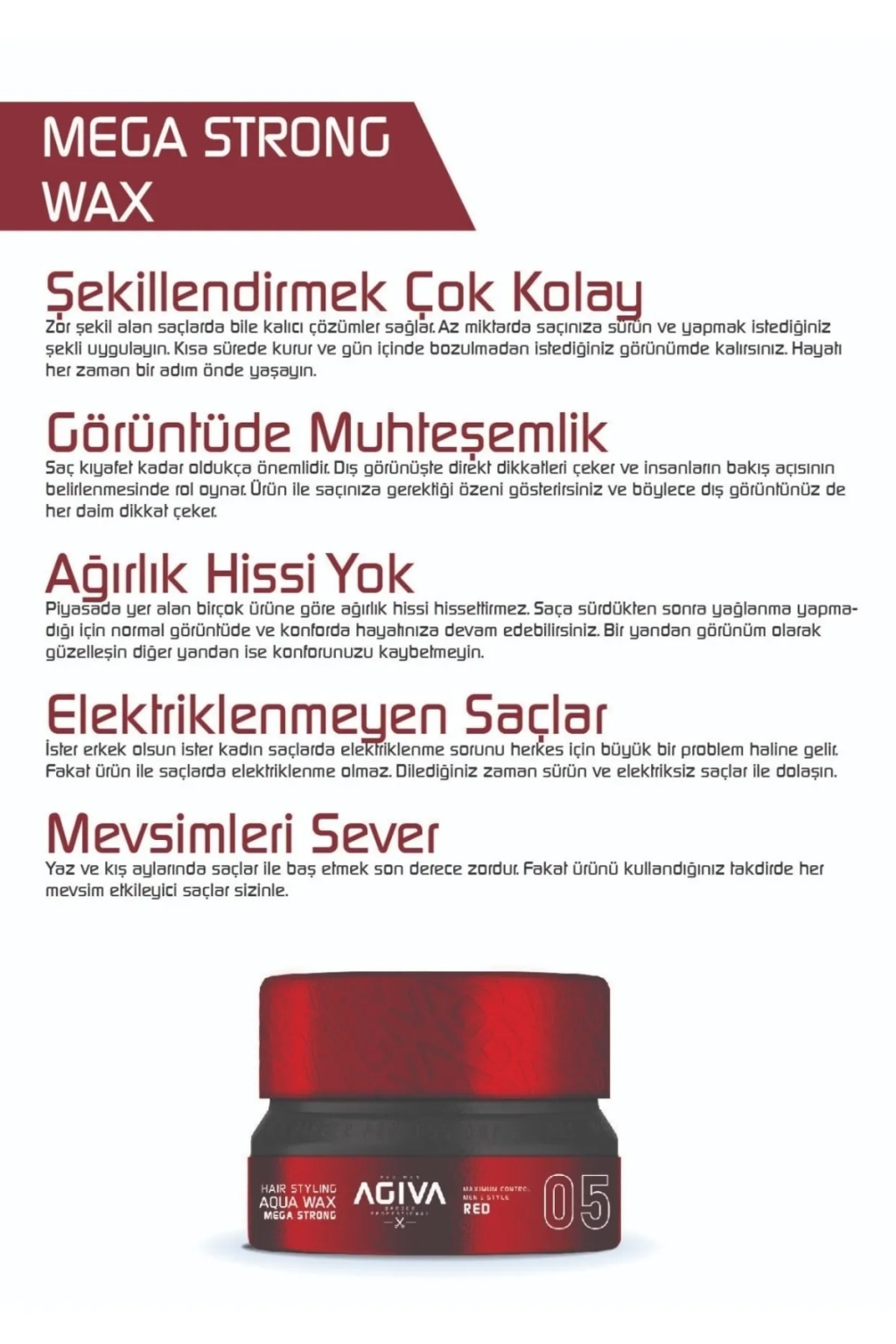 Agiva Hair Wax 155 Ml Mega Tutuş Daha Sert Görünümlü Saç Şekillendirci05 RED