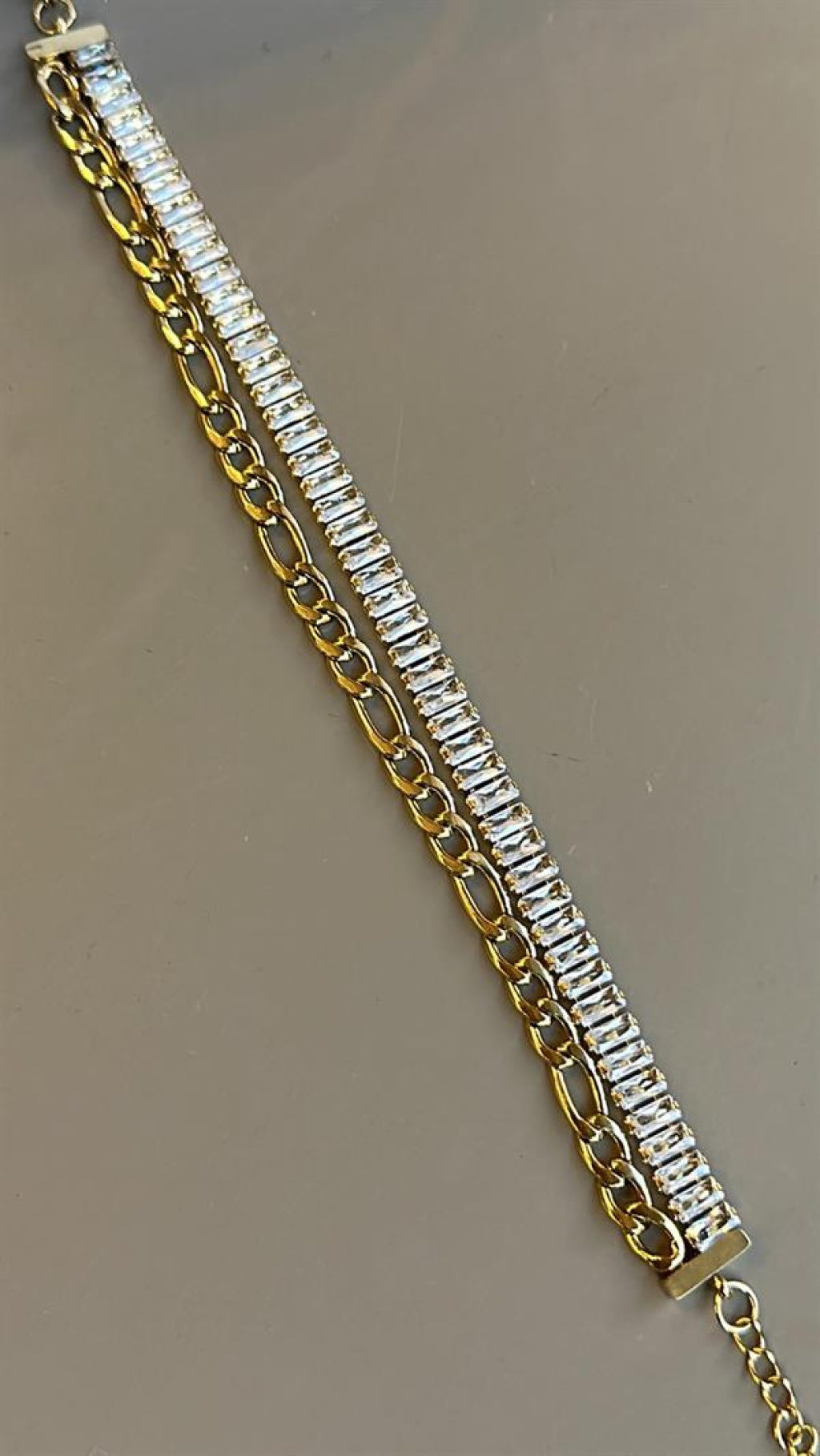 Taşlı Su Yolu Çelik Bileklik - Altın