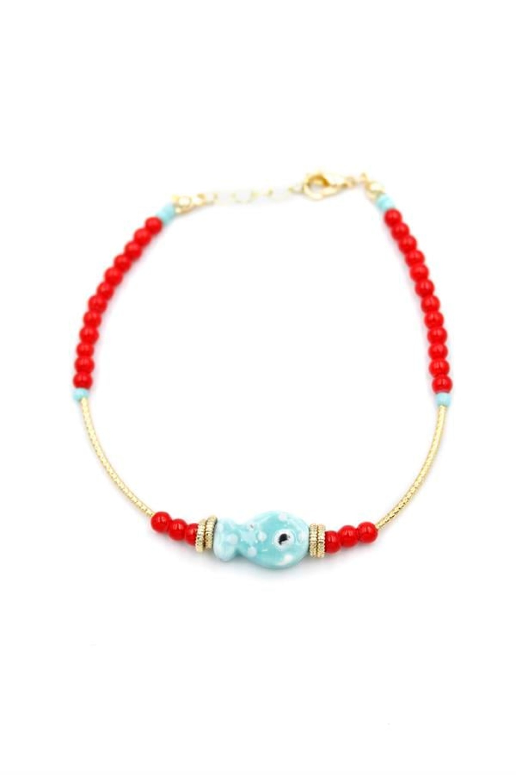 Boncuklu Balık Halhal - Kırmızı