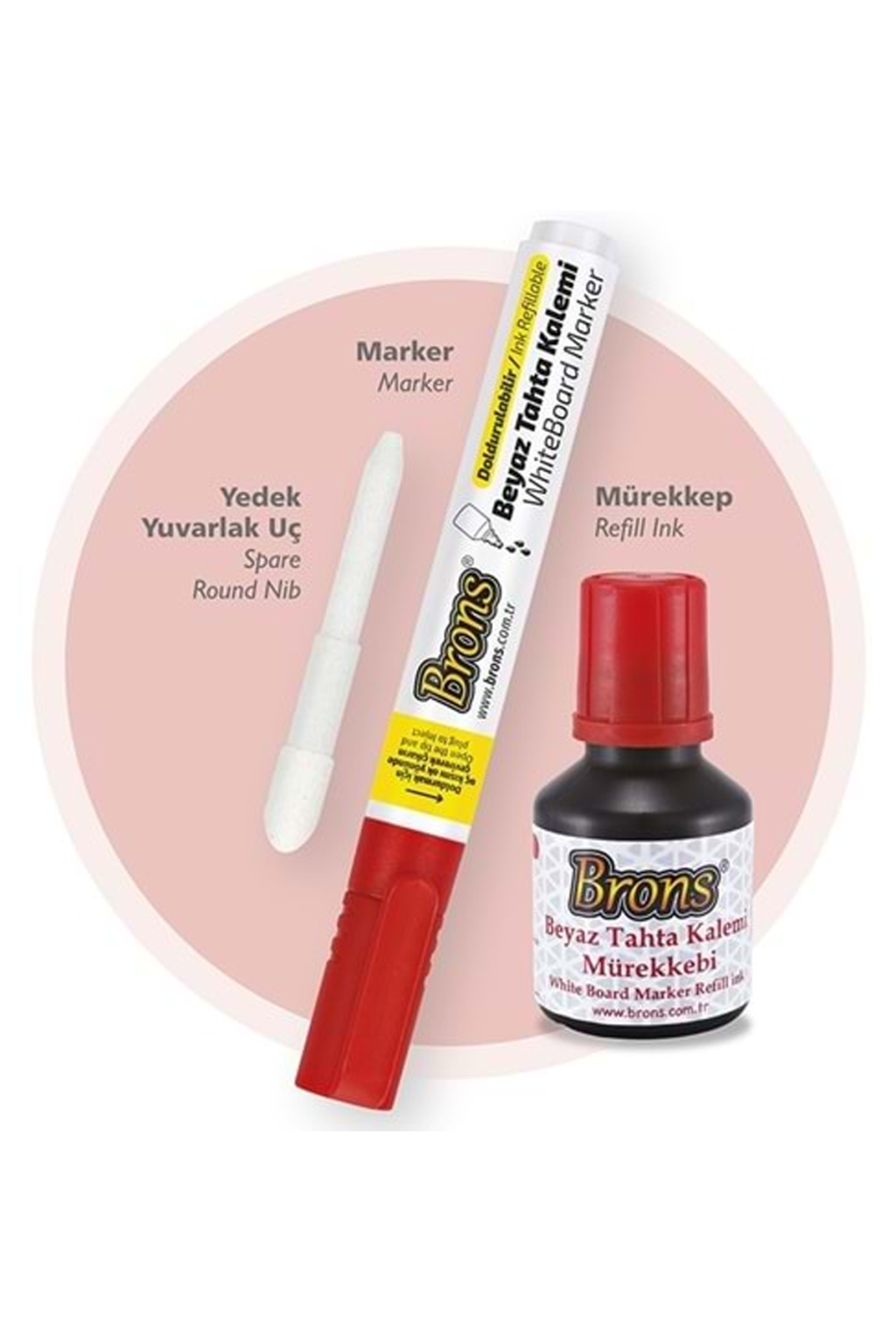 Brons Beyaz Tahta Kalemi Yedek Uç Mürekkep Seti Kırmızı Br-9552