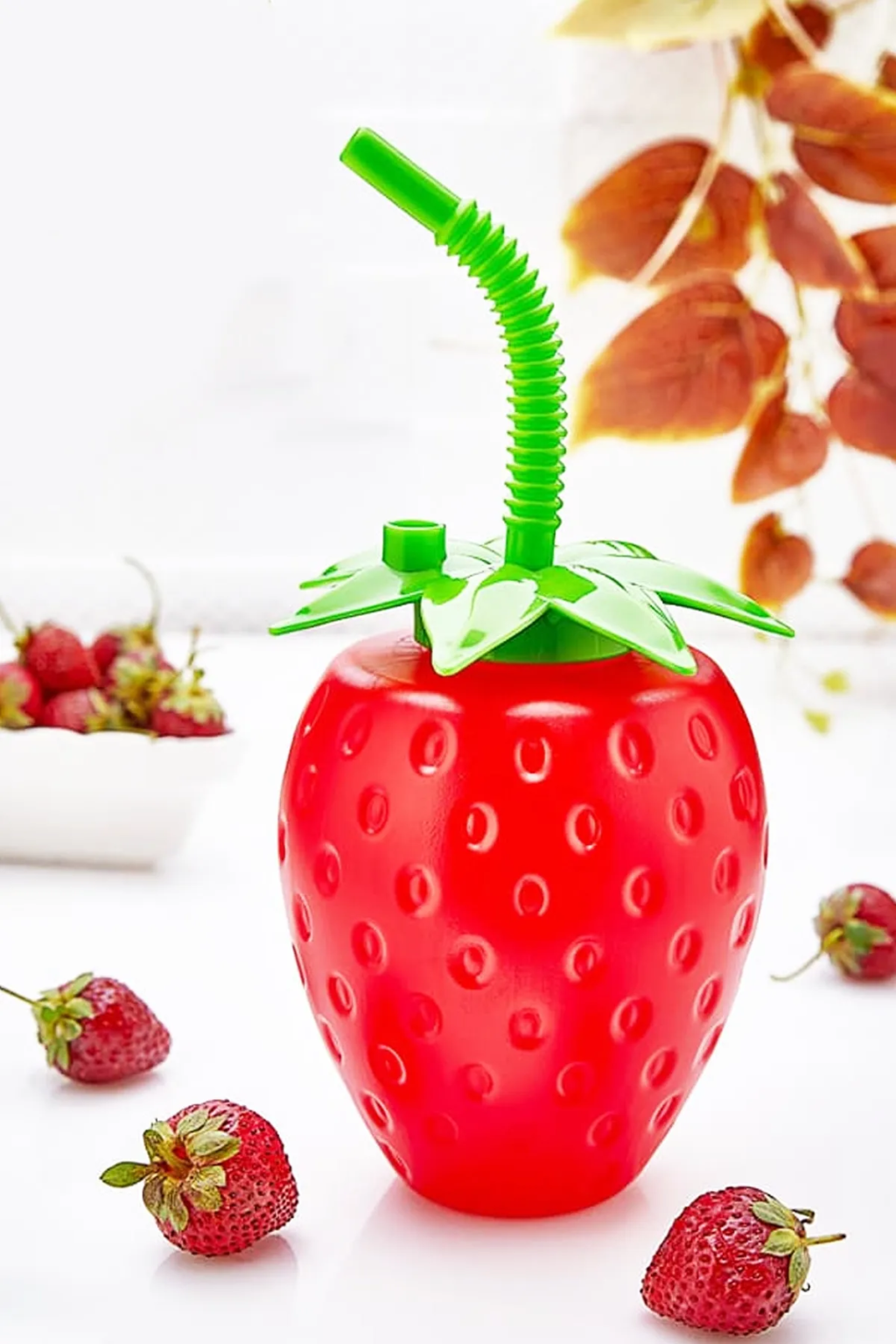 Çilek Pipetli Suluk Çilek Şeklinde Eğlenceli Suluk Royaleks-7028
