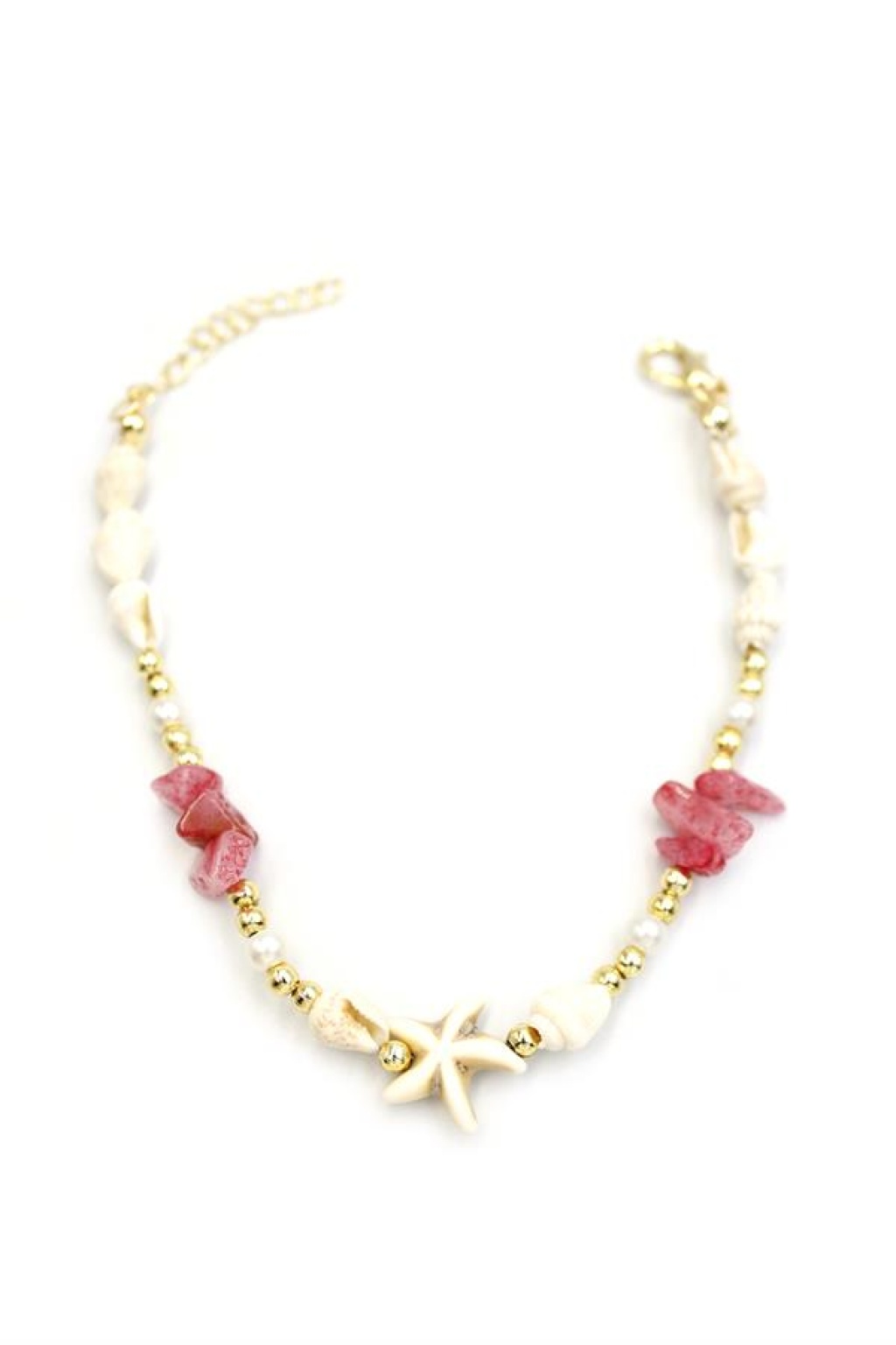 Boncuklu Balık Halhal - Beyaz