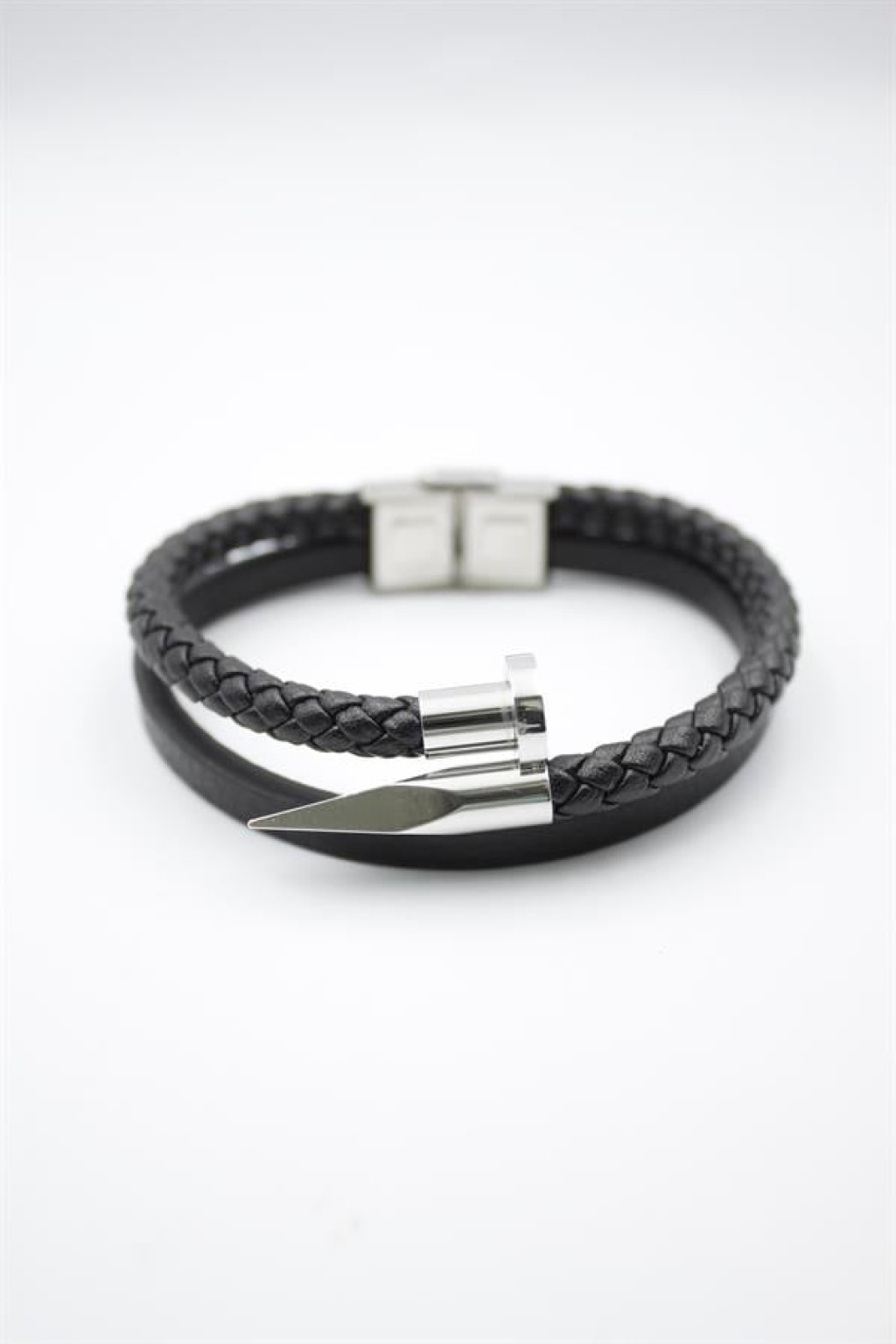 Deri Çivi Bileklik - Gümüş