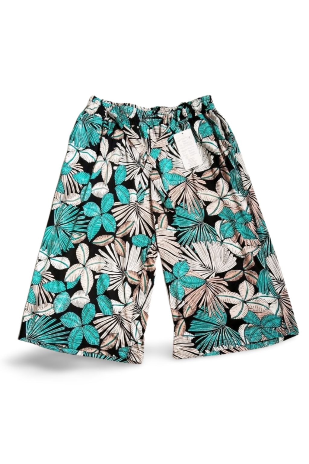 Dökümlü Desenli Yumuşak Viskon Kumaş Battal Beli Lastikli Kadın Jumbo Kapri Desen 1