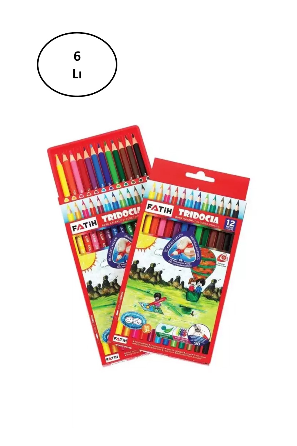 Fatih Kuru Boya Kalemi Tridocia Üçgen Mercanlı Tam Boy 12 Renk 6'lı
