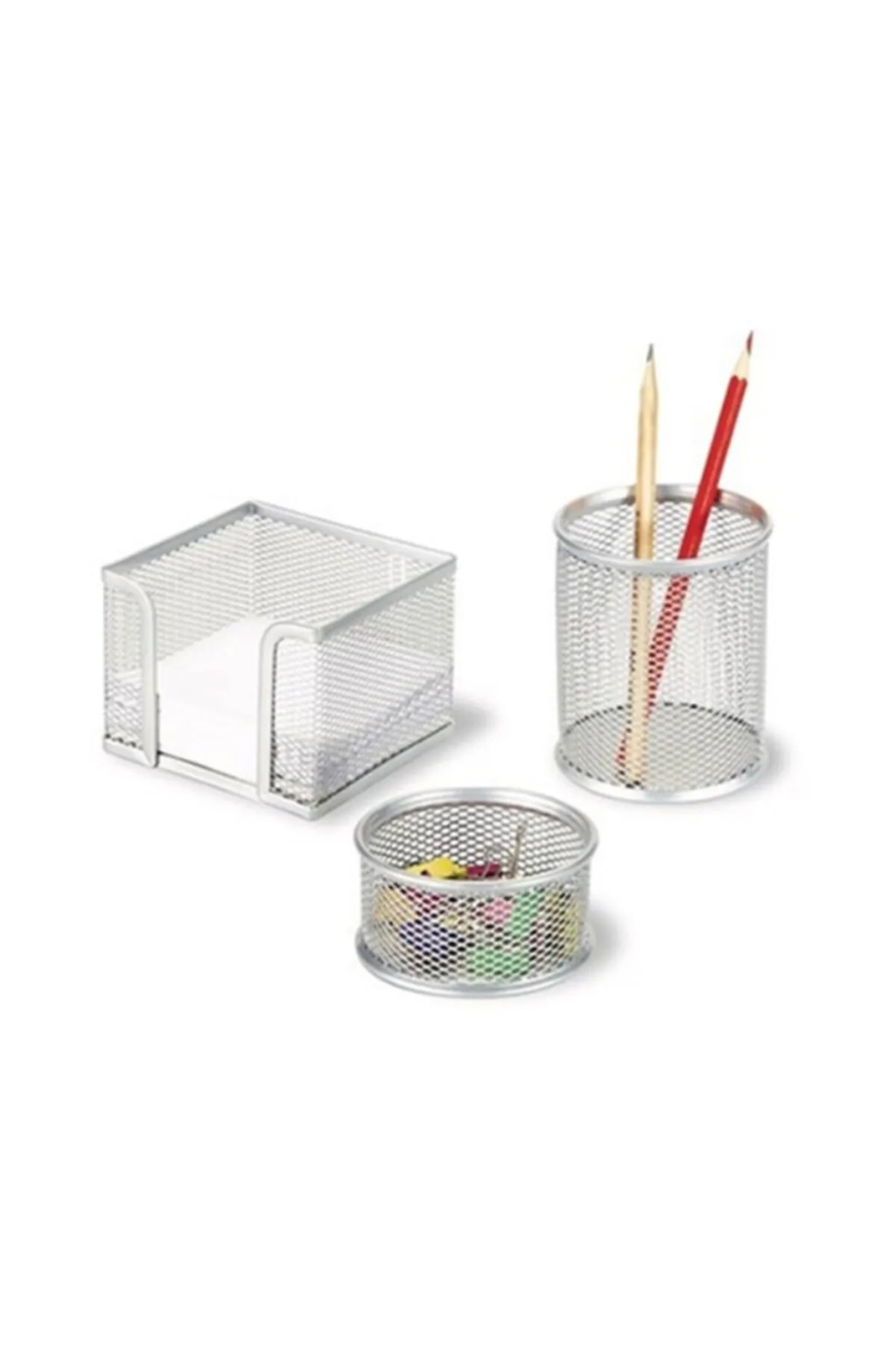 Gıpta Metal Masa Seti – 3 Gözlü Organizer Gümüş