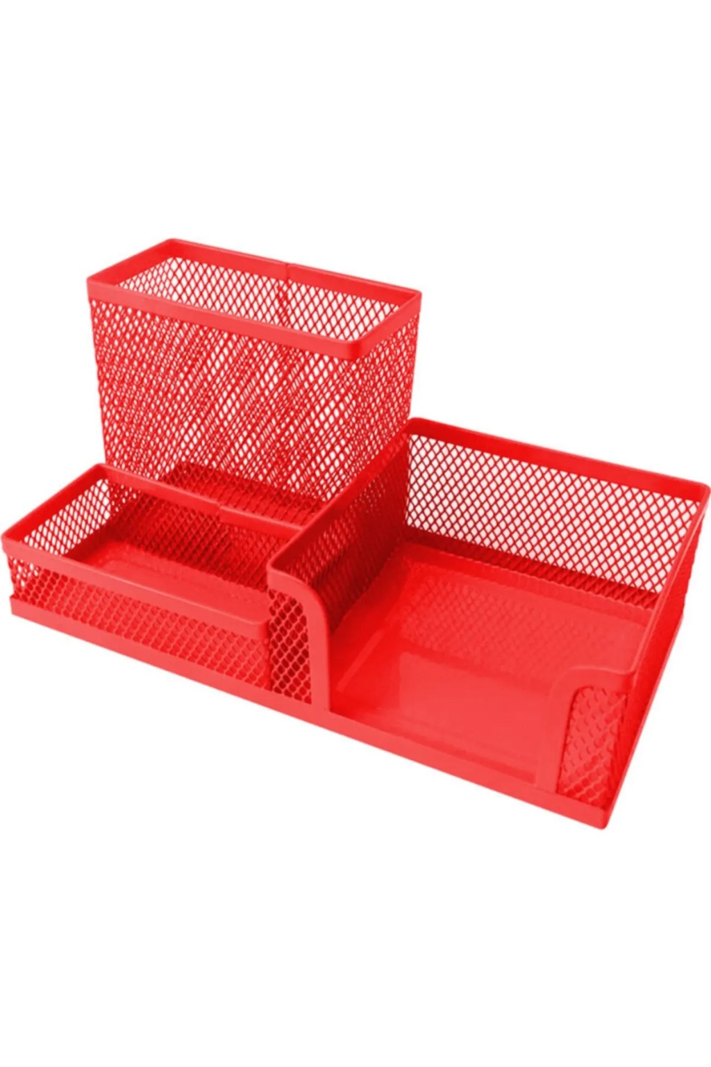 Gıpta Metal Masa Seti 3 Gözlü Organizer Masa Üstü Kalemlik Notluk Seti Kırmızı