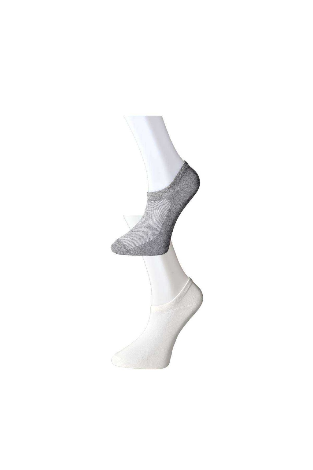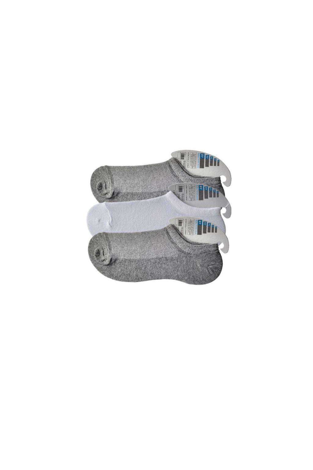 Gri ve Beyaz Erkek Görünmez Çorap 3 çift