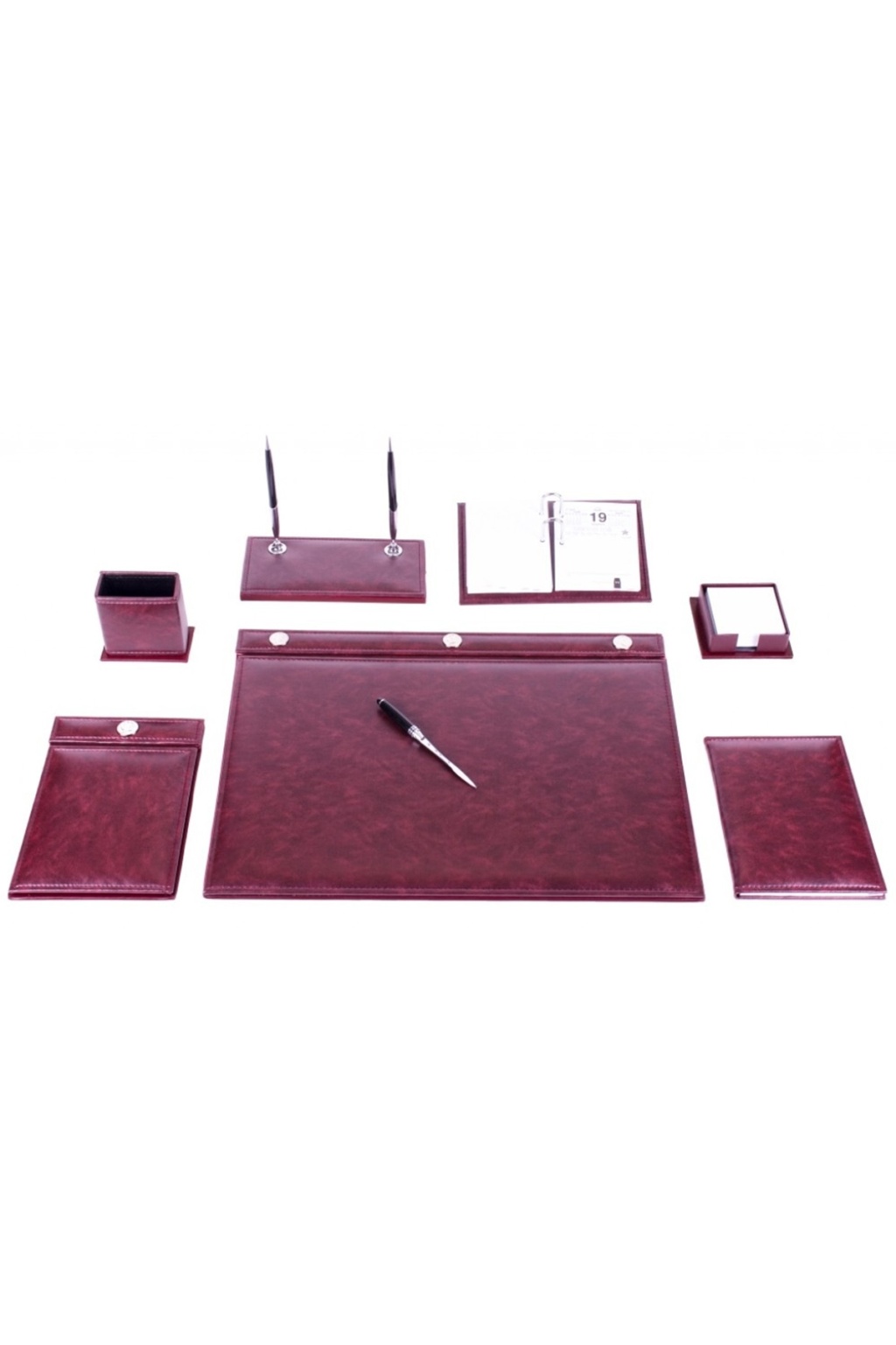 Gülpaş Sümen Takımı 9 Parça Lüks Düğmeli Suni Deri Kalemli Bordo