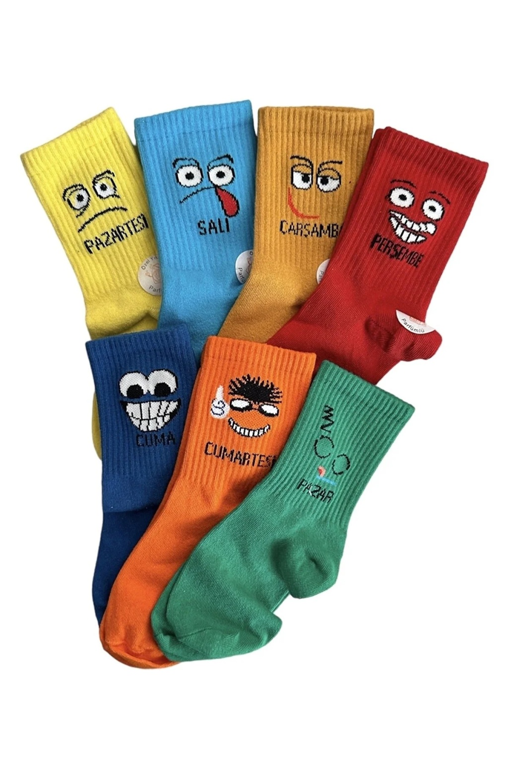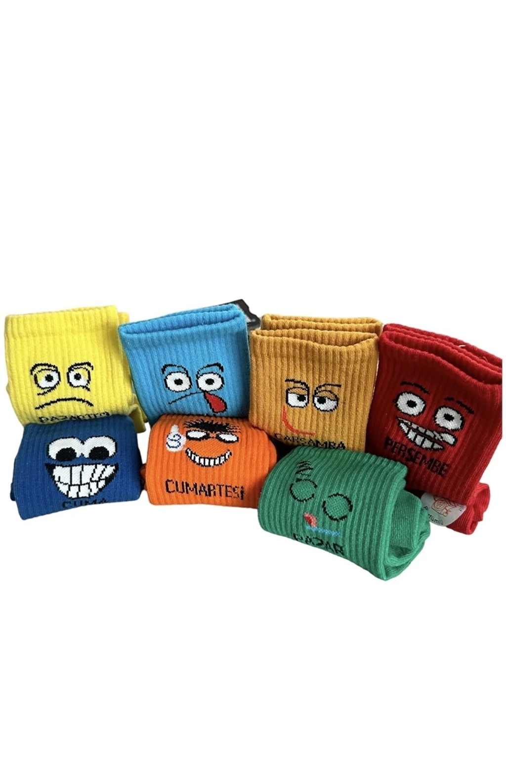 Haftanın 7 Günü Özel Emoji Basklılı Eğlenceli Tenis Kolej Çorap Kutulu Unisex - Royaleks