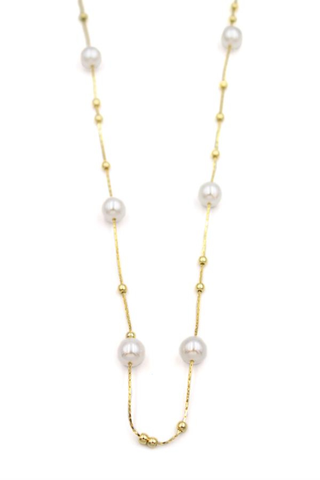 İncili Zincir Kolye - 14K Altın